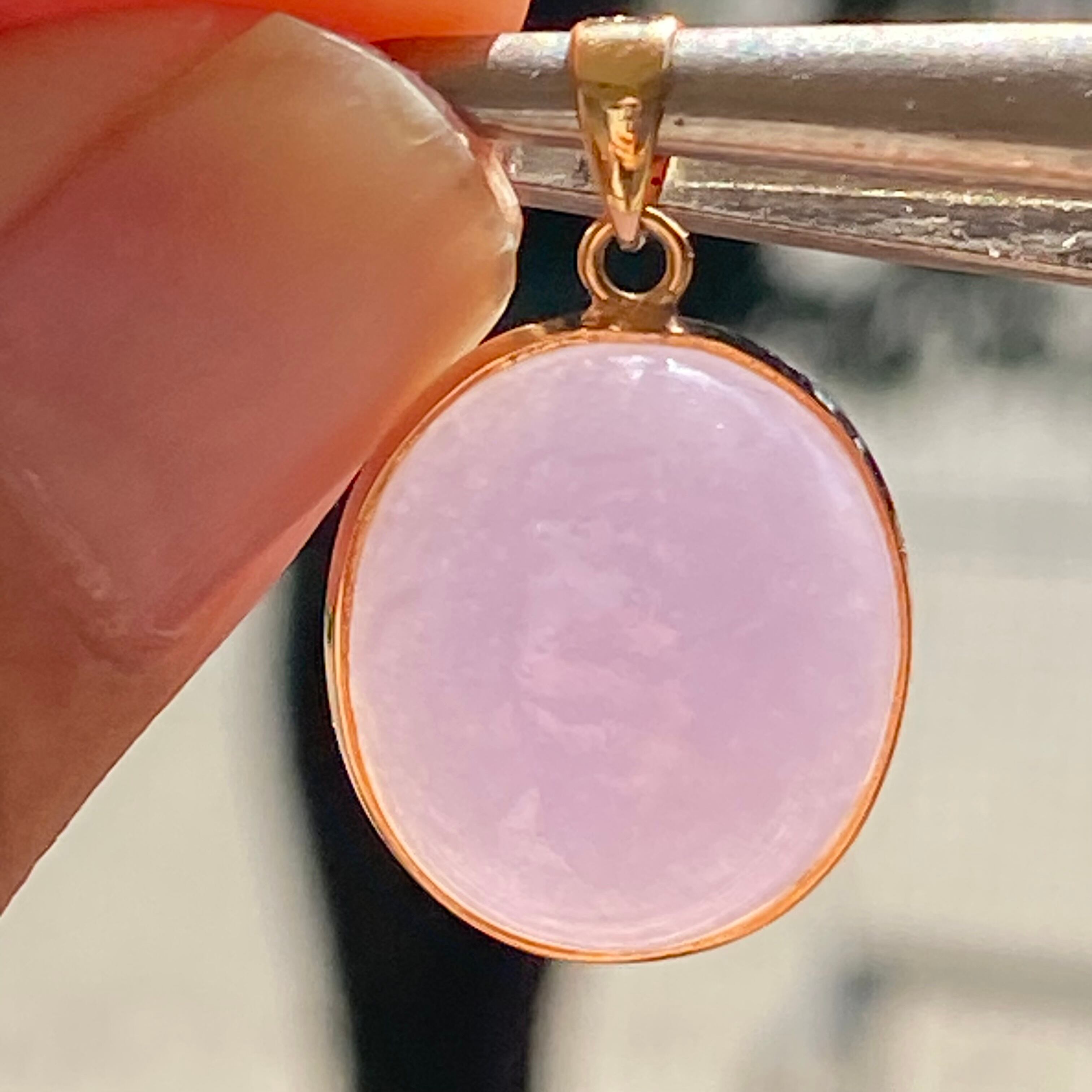 K18YG AU750 18金 ラベンダー翡翠 ペンダント(鑑別カード付)