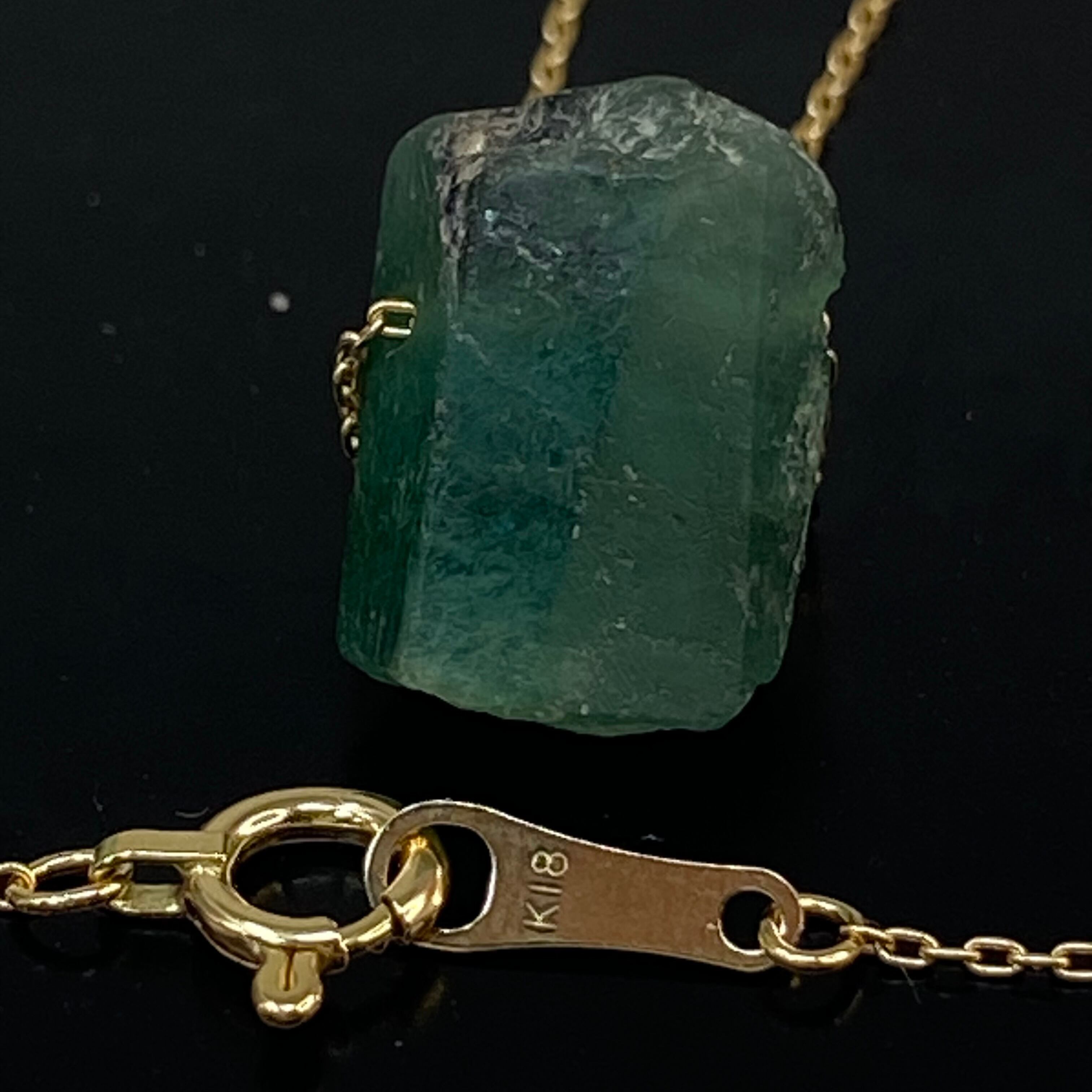 ## k18YG AU750 18金 天然エメラルド原石 6ct アズキチェーンネックレス【甲府産/新品】