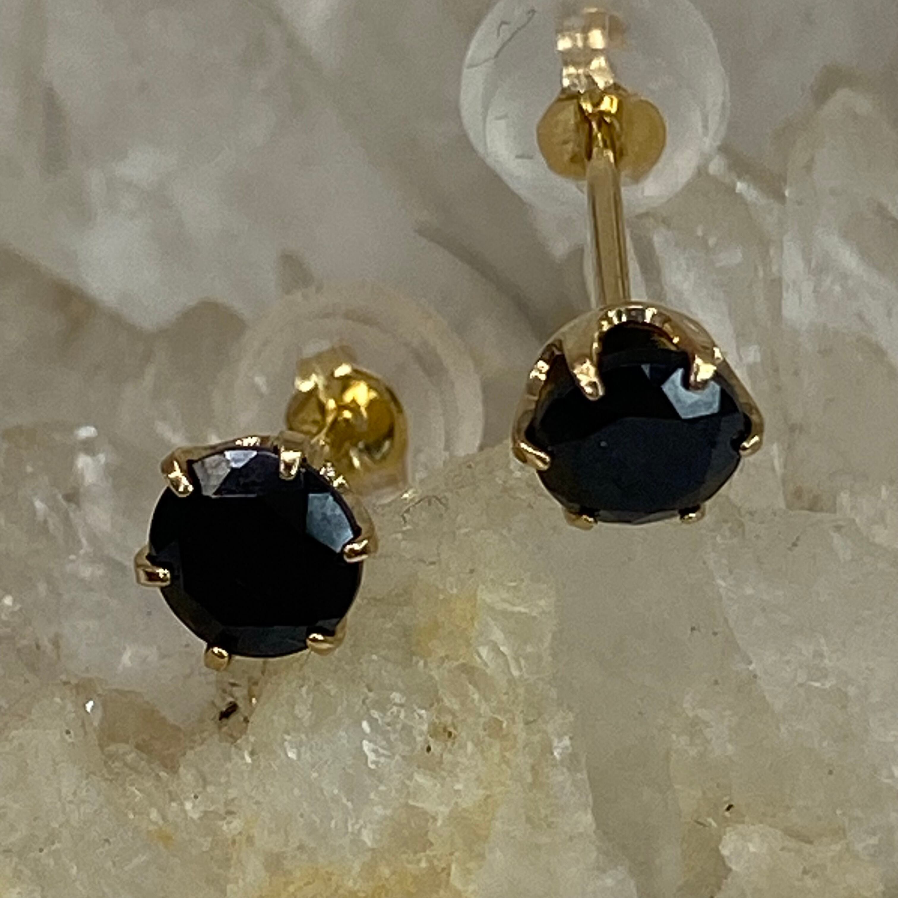 **K18イエローゴールド**の枠に、合計0.65カラットの**天然ブラックダイヤモンド**をセットした、シンプルで洗練されたスタッドピアスです。
