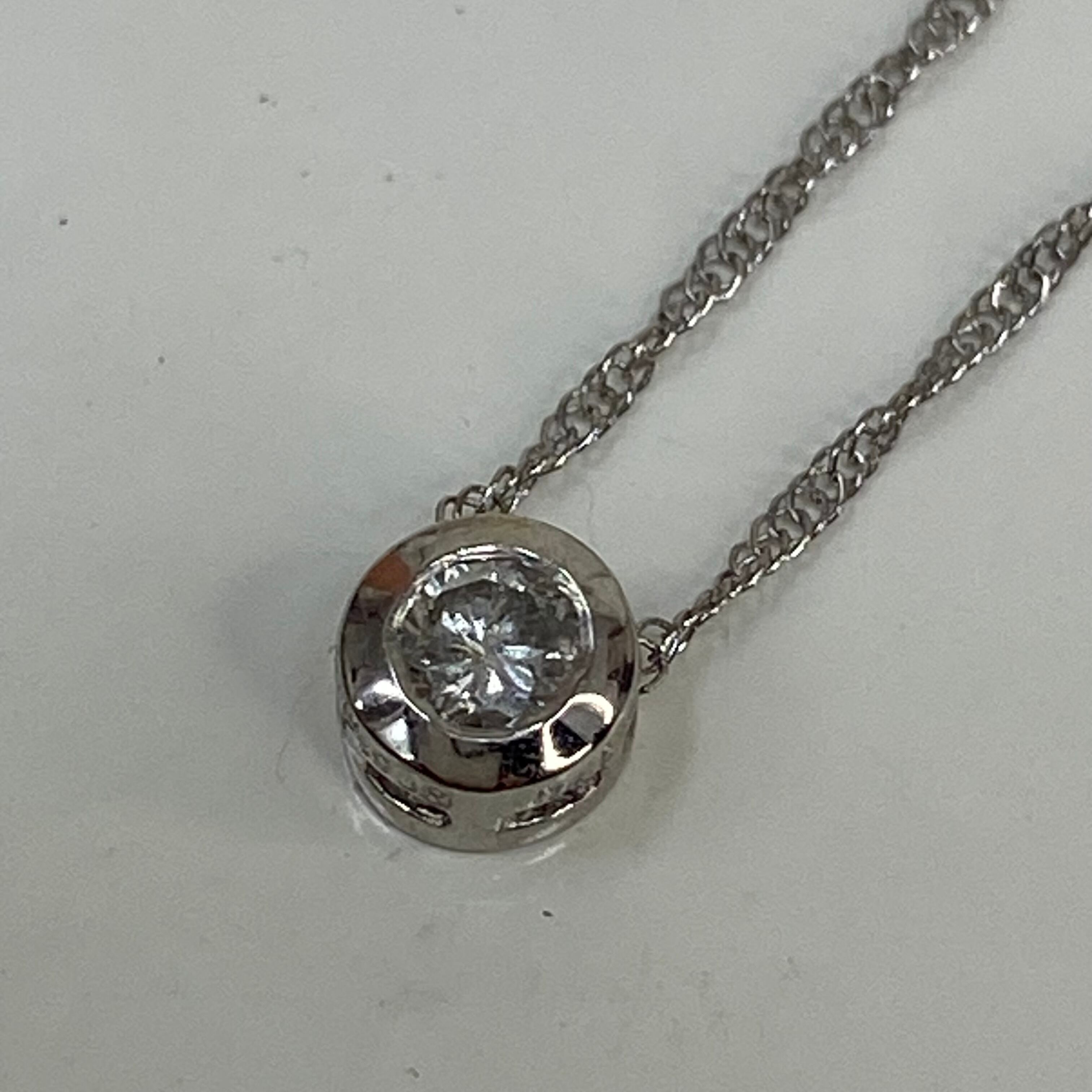 プラチナならではの**上品な輝き**が魅力的な、天然ダイヤモンドの一粒ネックレスです。