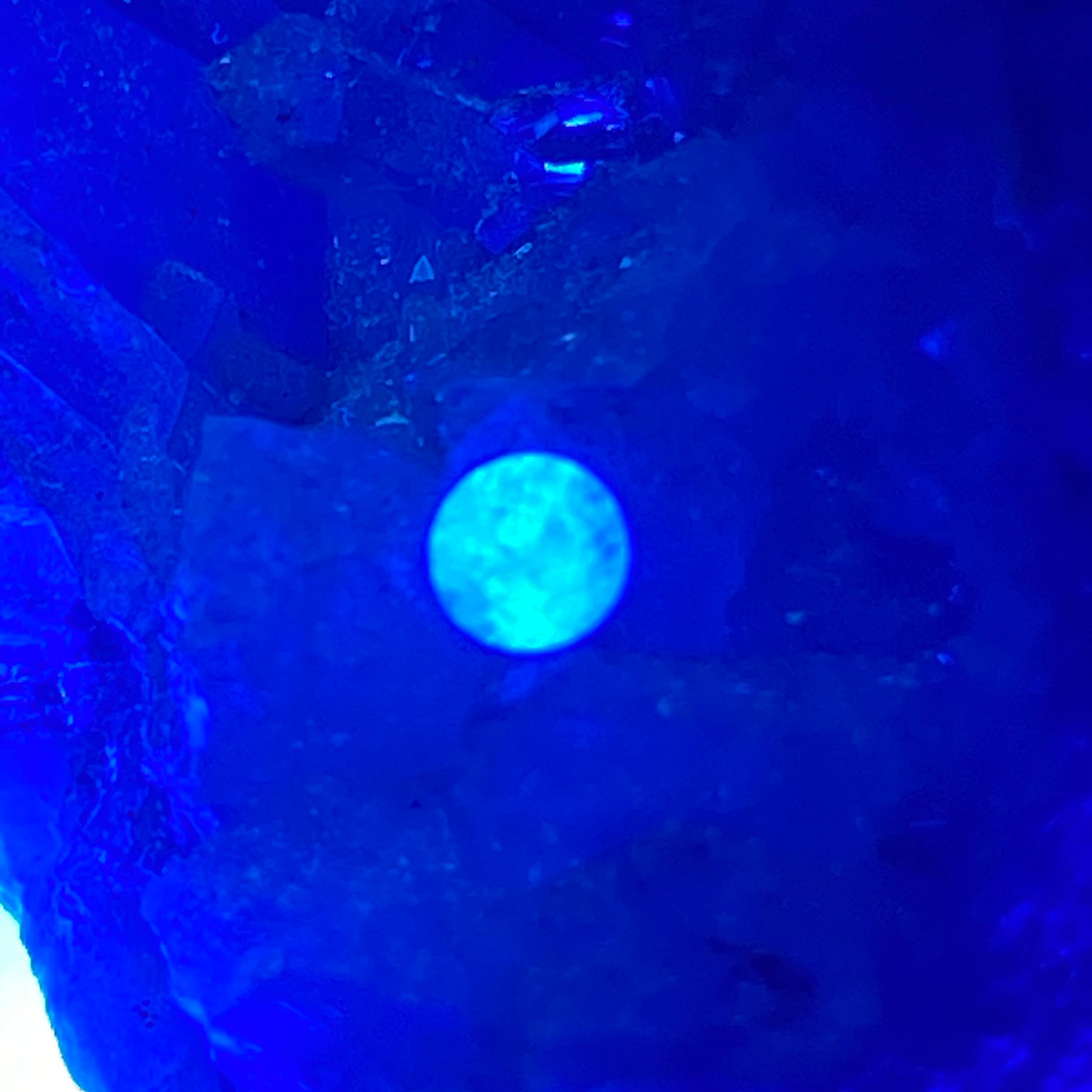 * **神秘的な変化**: **通常時**は美しい**透明感のある輝き**を放ちますが、**紫外線を当てる**ことで**鮮やかな色に変化**する、ユニークな特性を持っています。