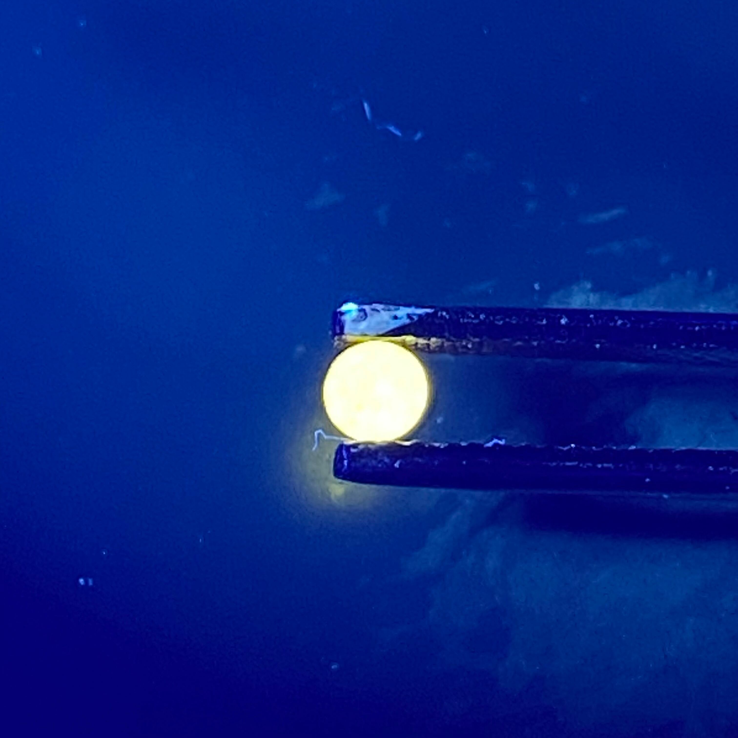 * **紫外線を当てる**(市販のブラックライトなどでOK)ことで、**鮮やかな白色の強い黄色がかった色味**に劇的に変化します。