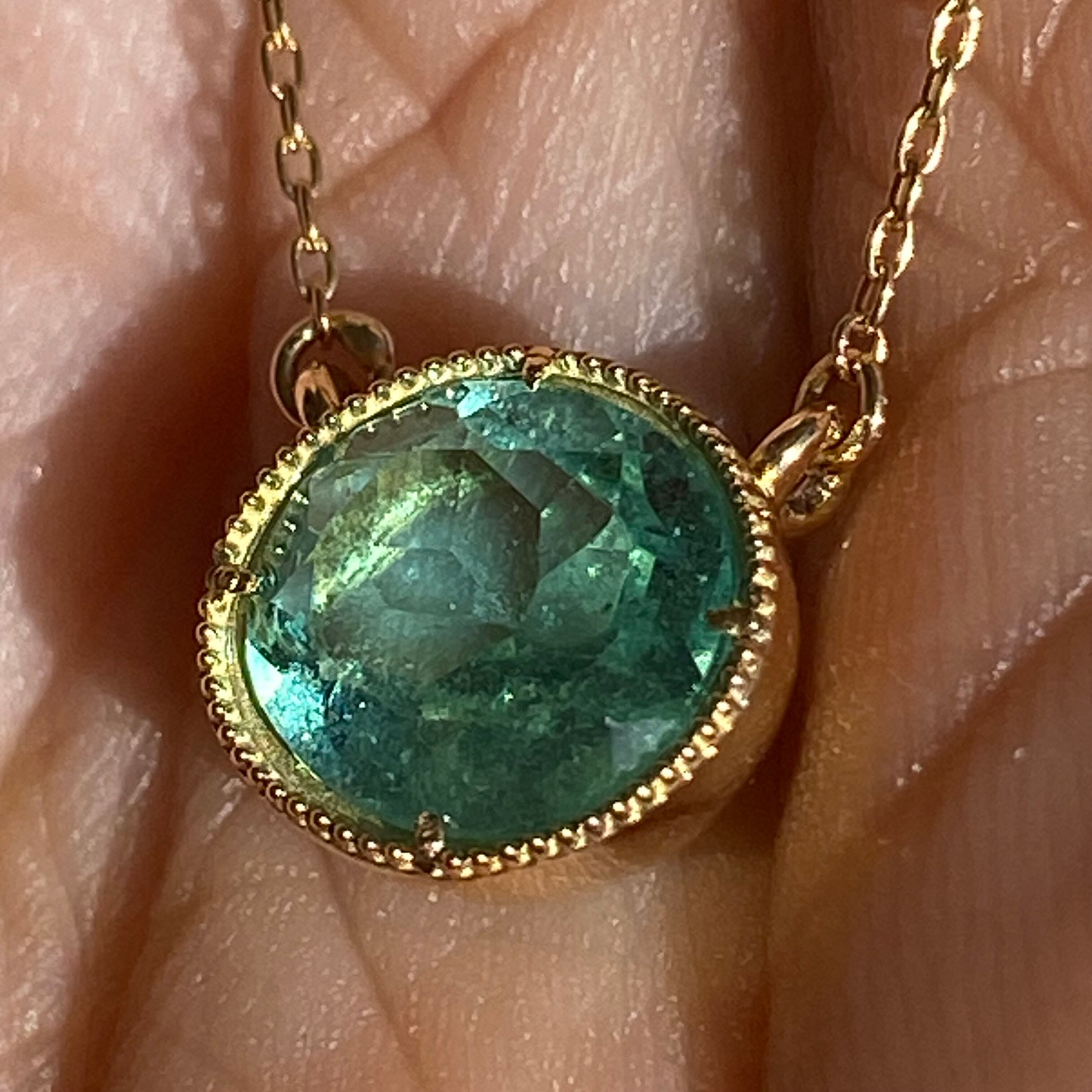 K18YG 天然エメラルド 0.92ct ミル打ち ネックレス 鑑別書付