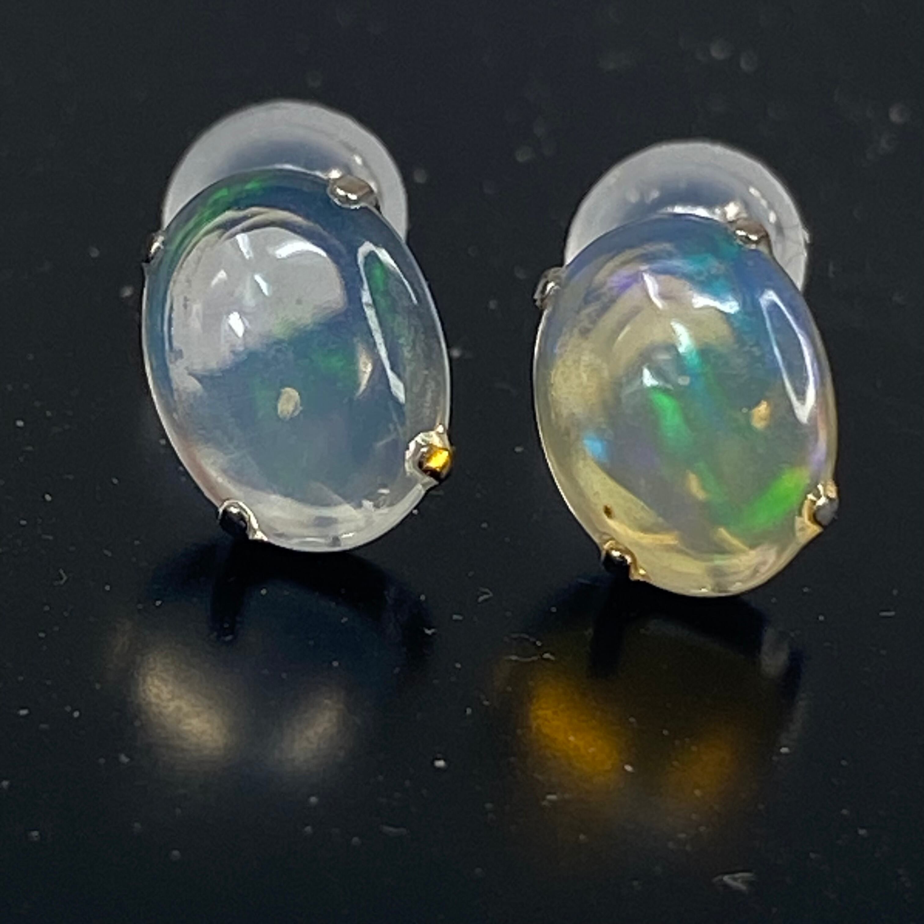 【天然オパール】プラチナピアス 8×6mm(両耳ペア)