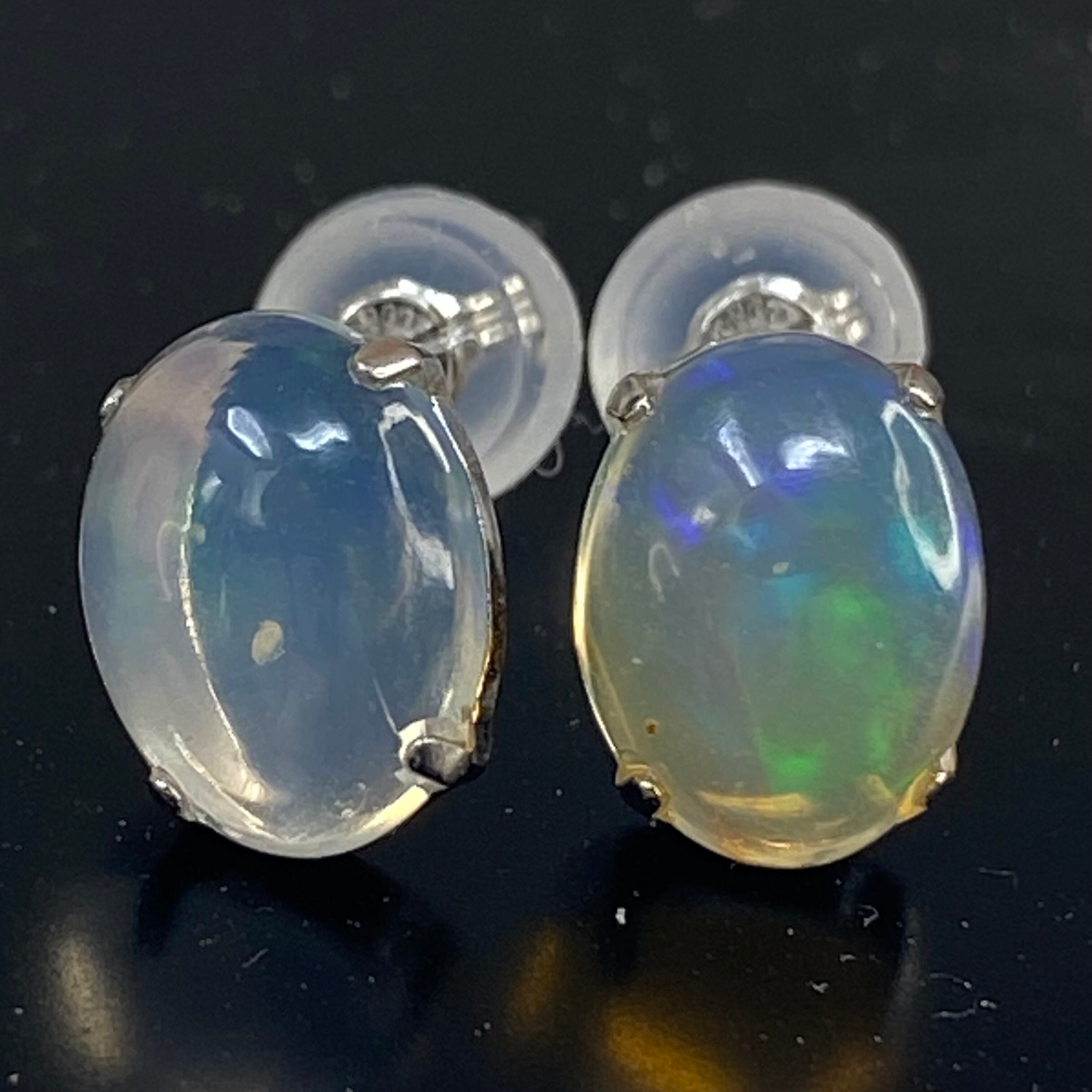 **【天然オパール】プラチナピアス 8×6mm(両耳ペア)**