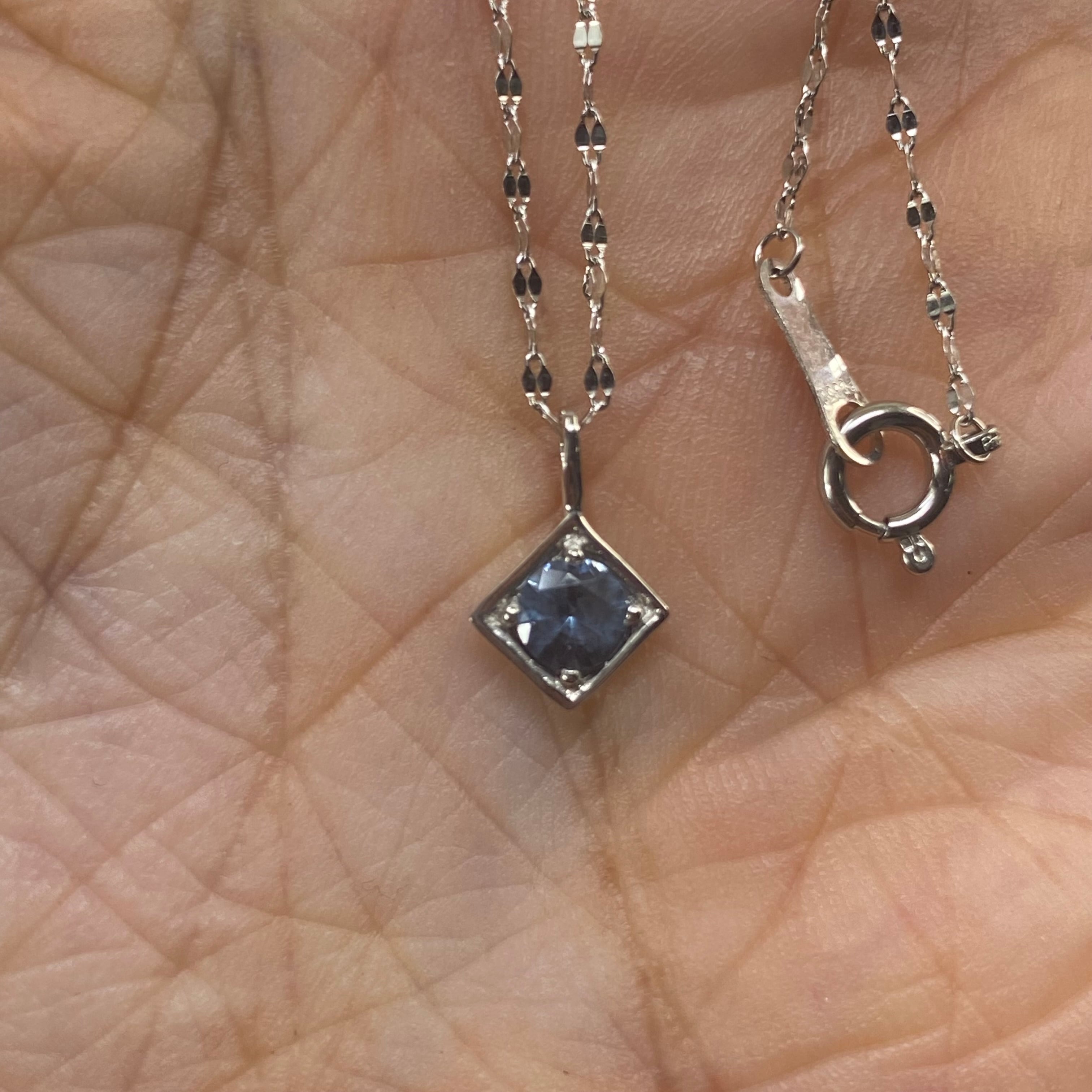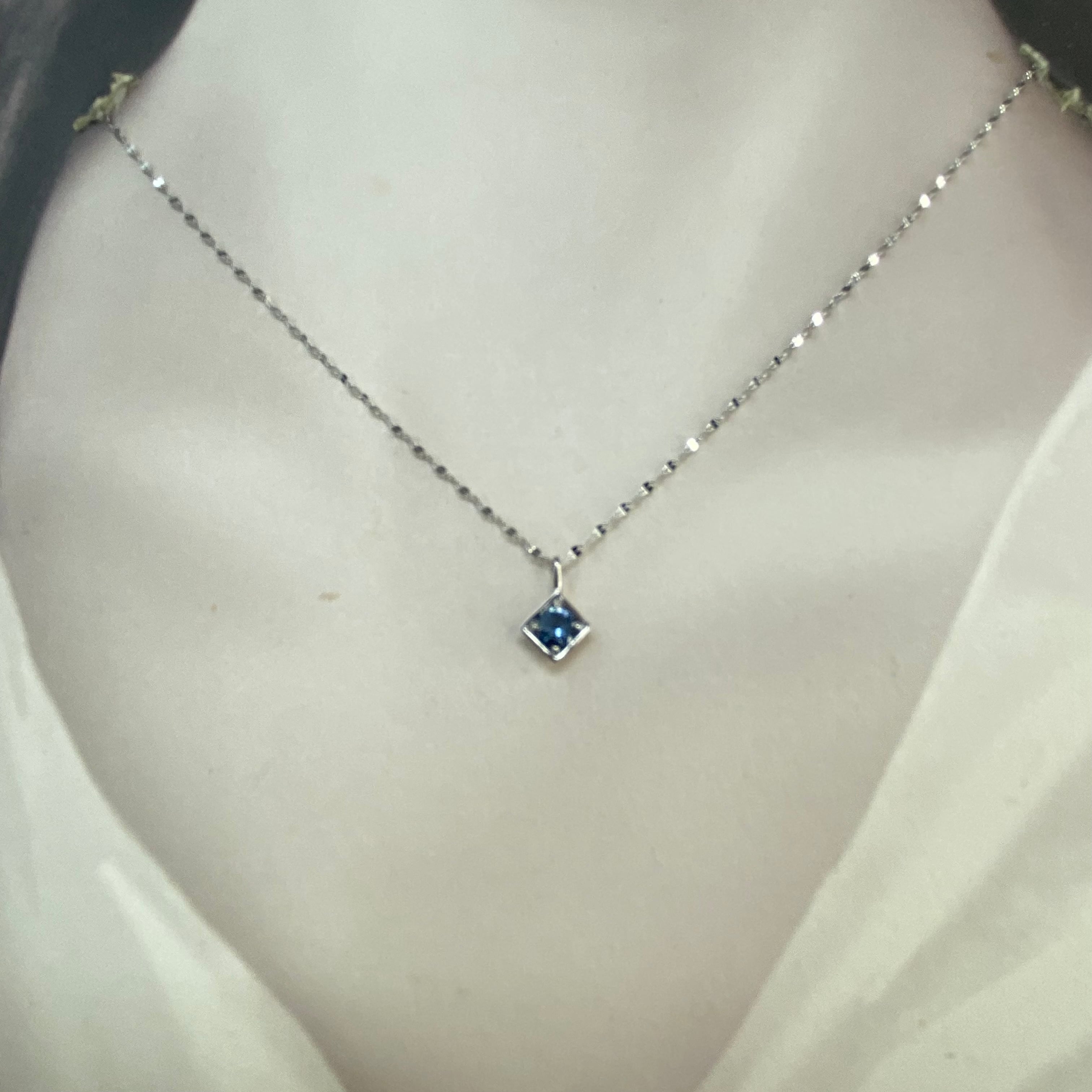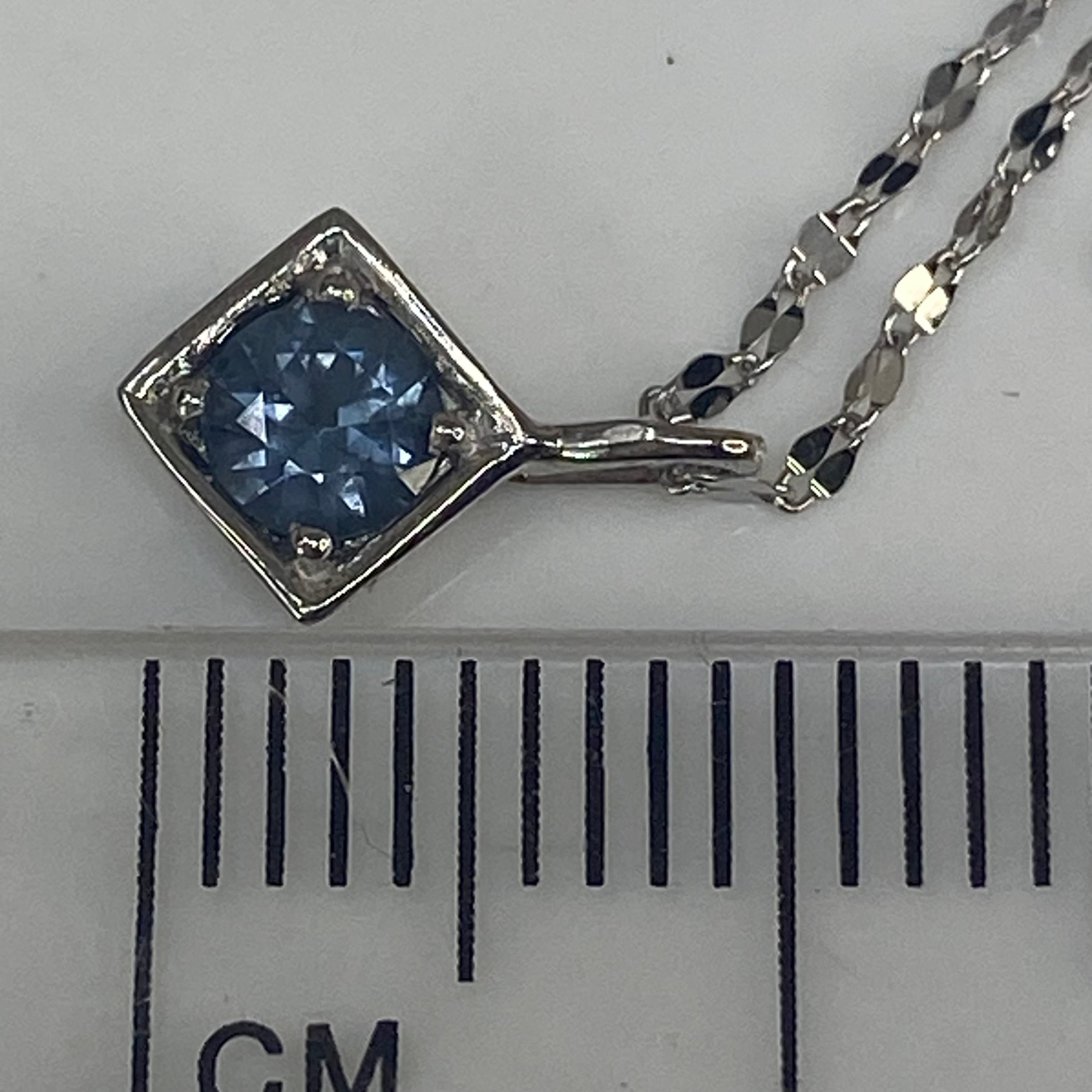 落ち着いたブルーの輝きが美しい天然スピネルを使用した、プラチナ製のペンダントネックレスです。