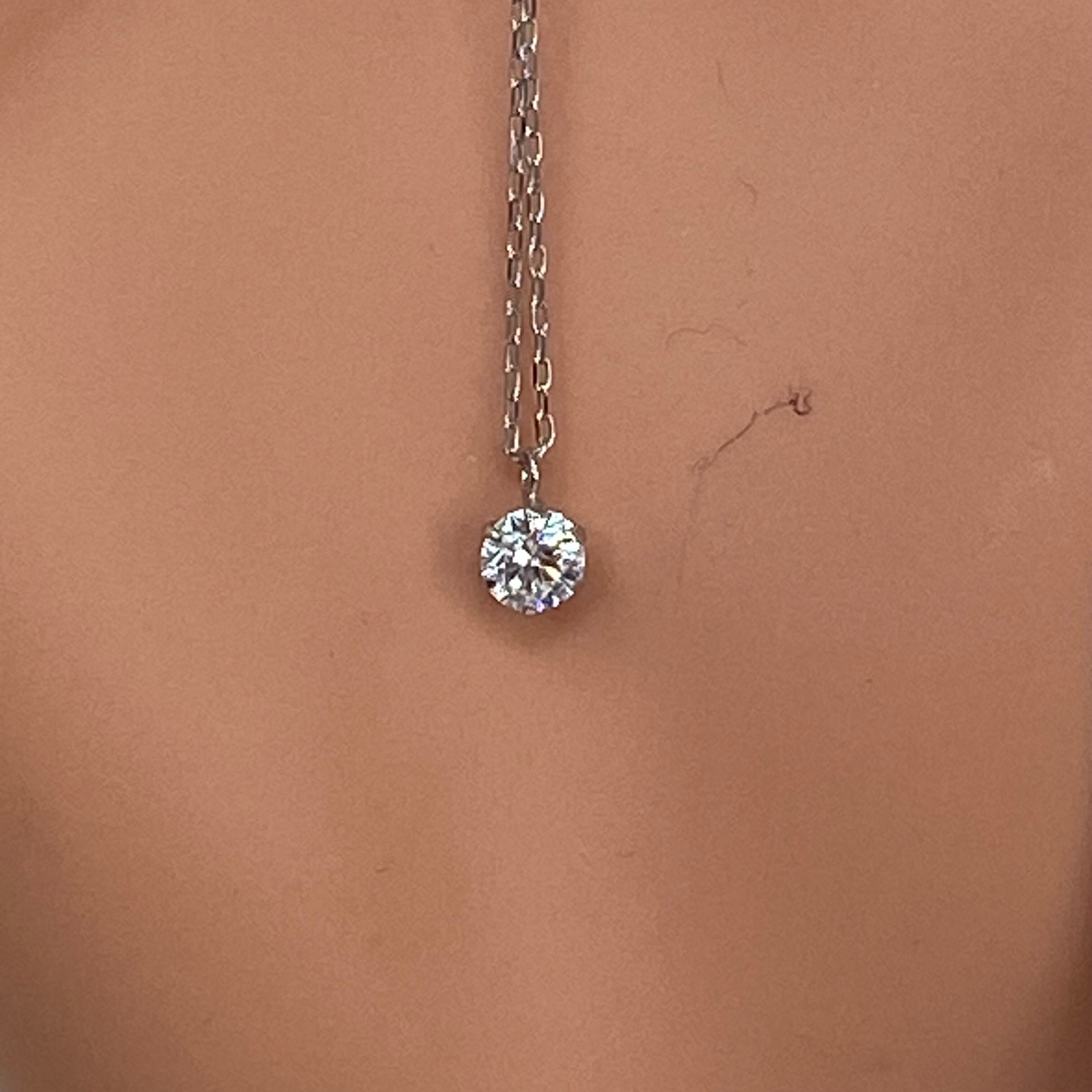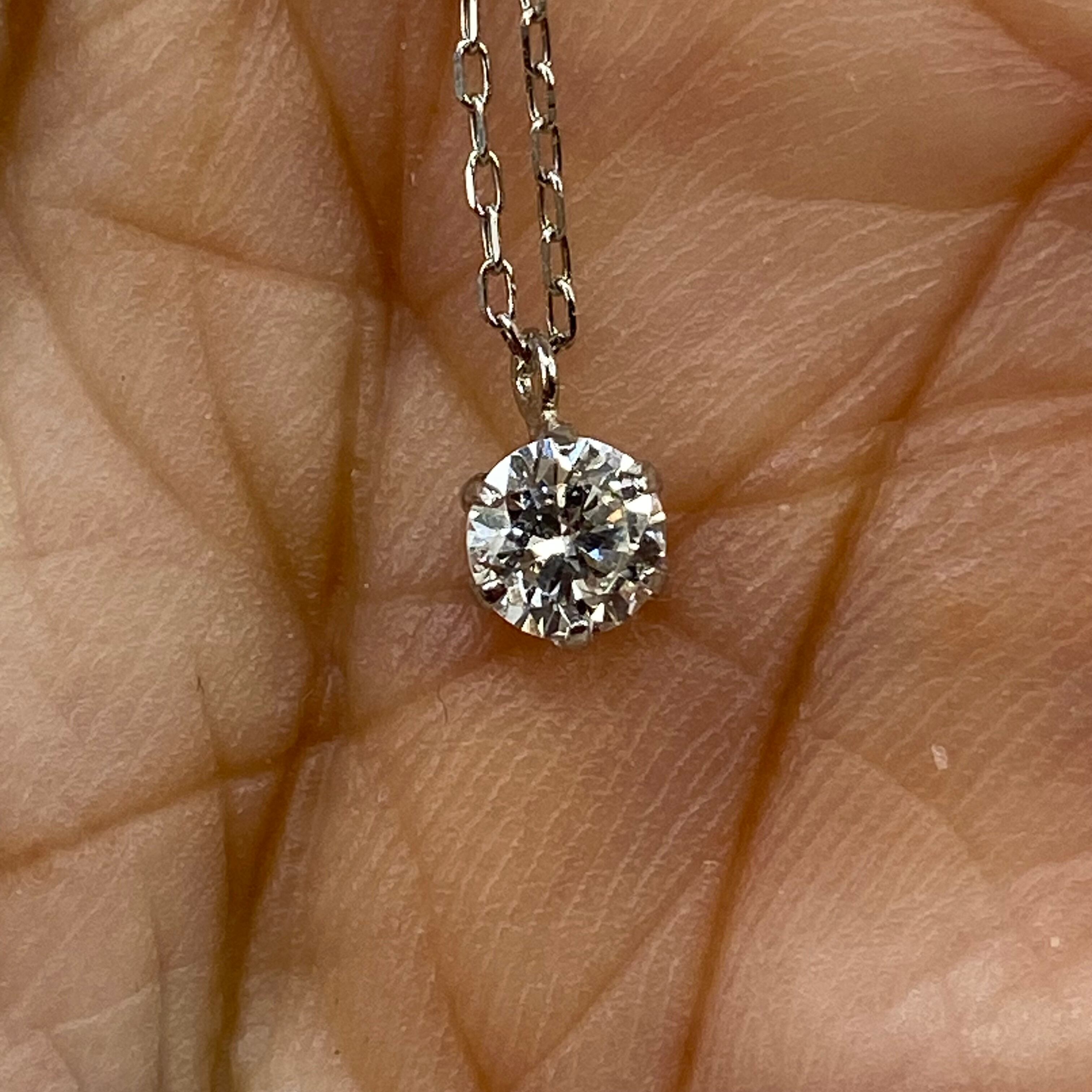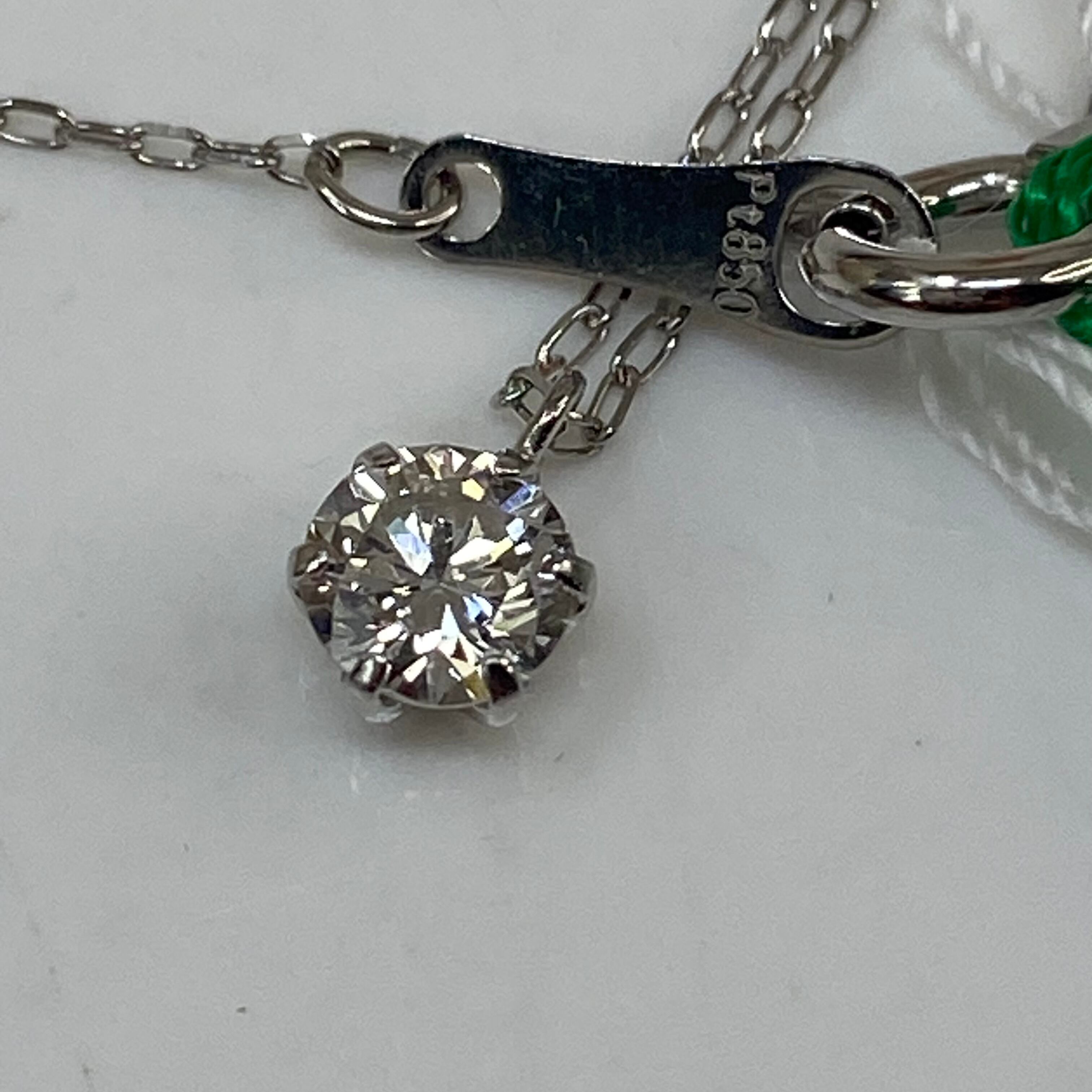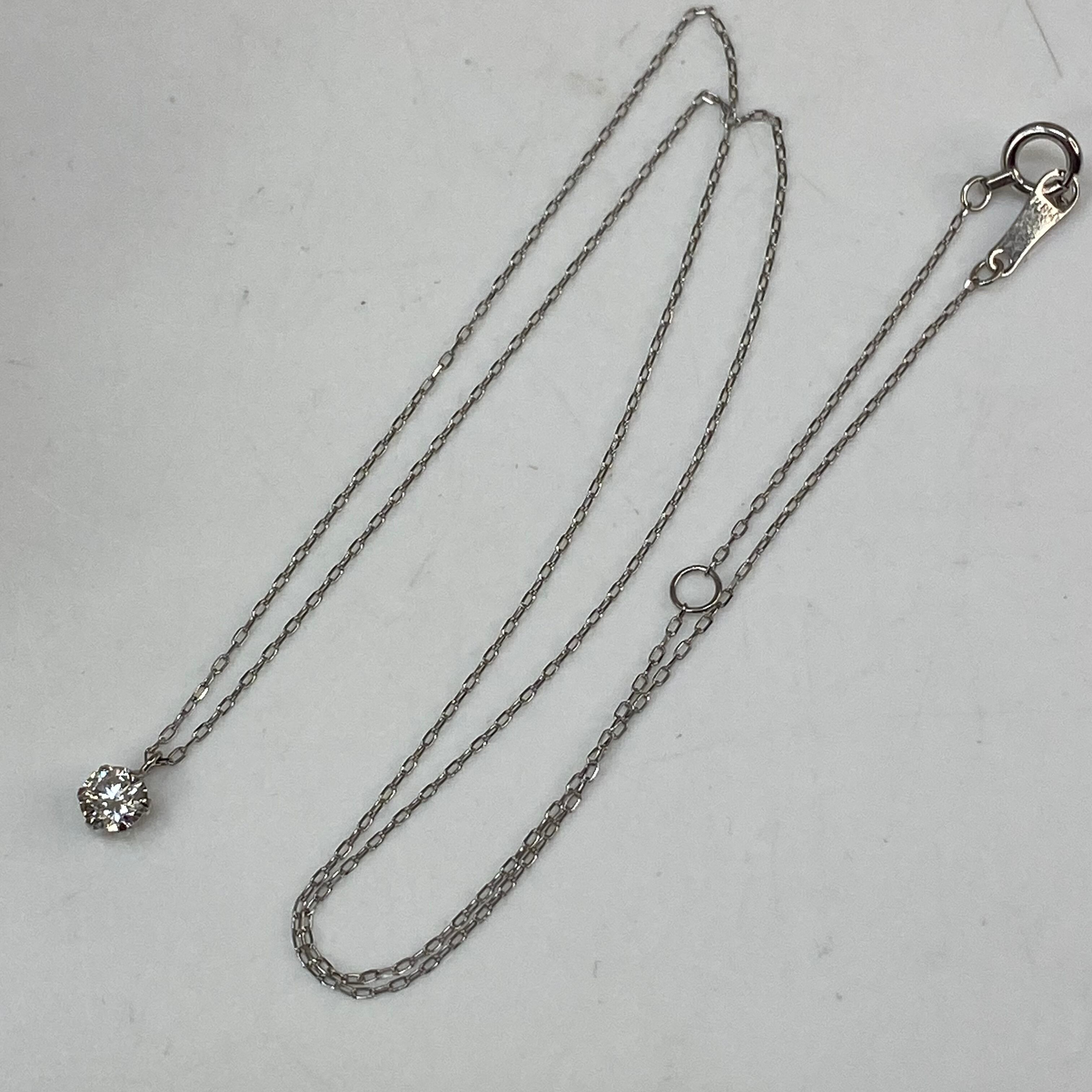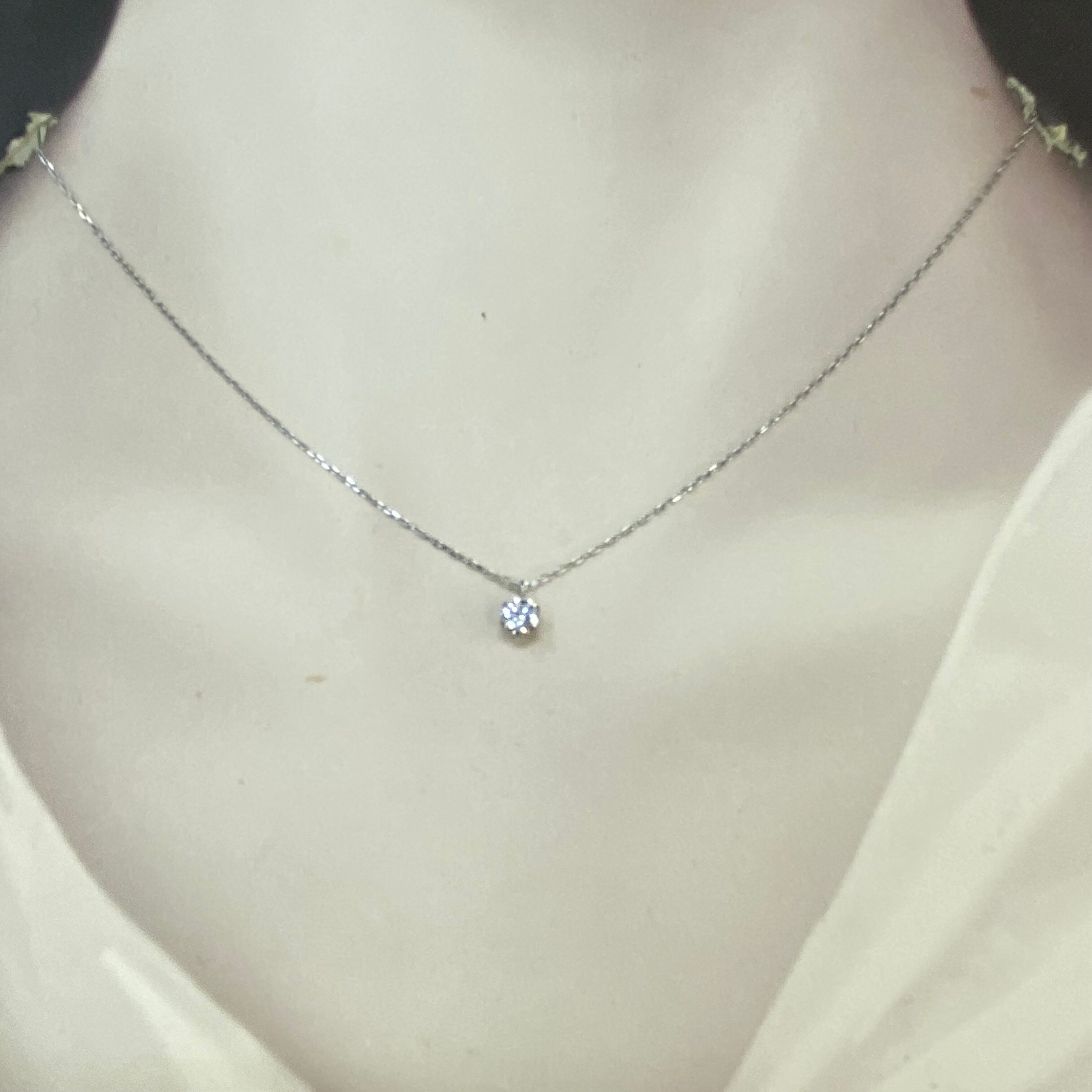 上質なプラチナ(Pt900/Pt850)と、**0.2ctの天然ダイヤモンド**を組み合わせた、時代に左右されない王道の一粒ネックレスです。