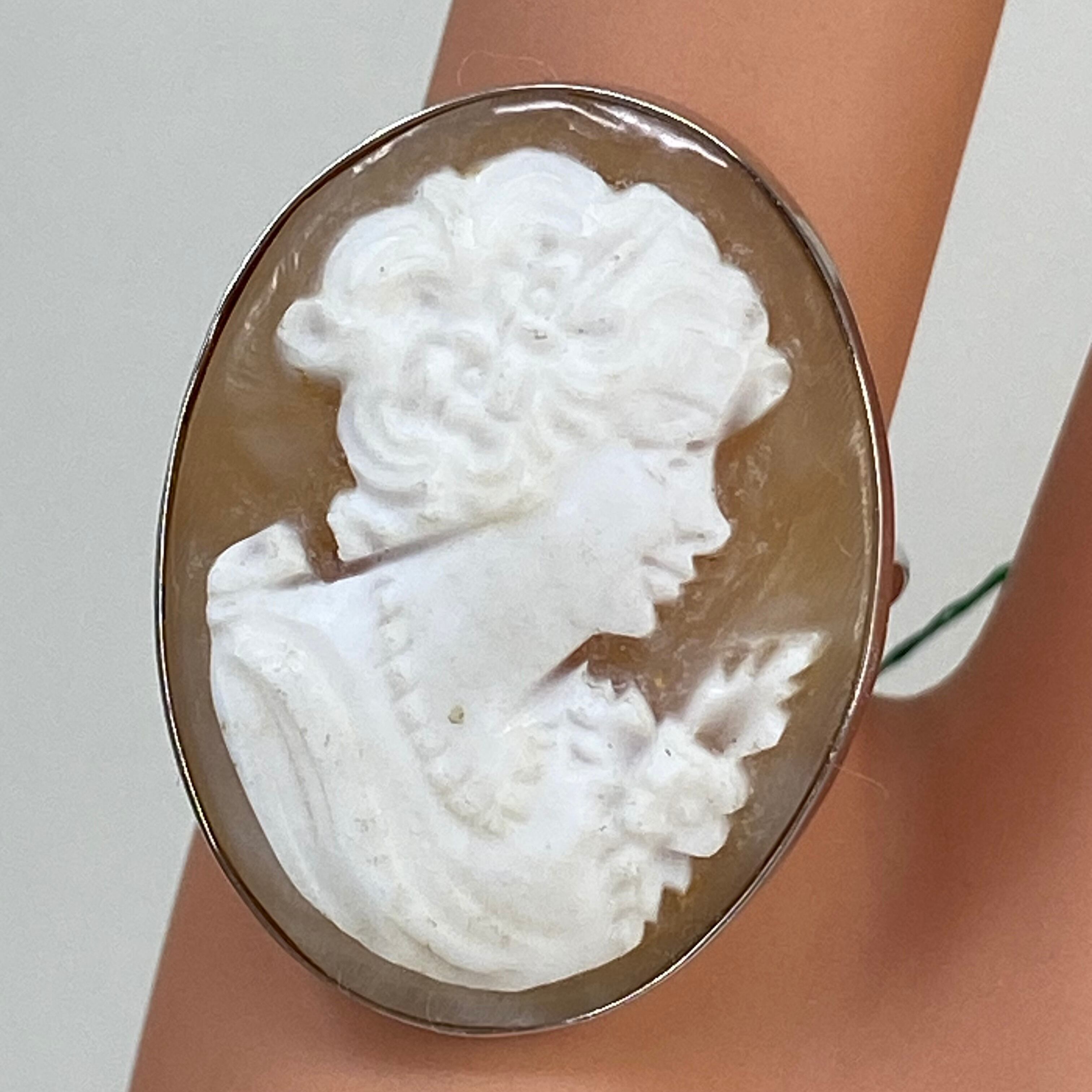 * **フォルム:** 存在感のある大ぶりなオーバル(楕円)形状ながら、シンプルなベゼルセッティング(覆輪留め)を施すことで、カメオの美しさを際立たせています。