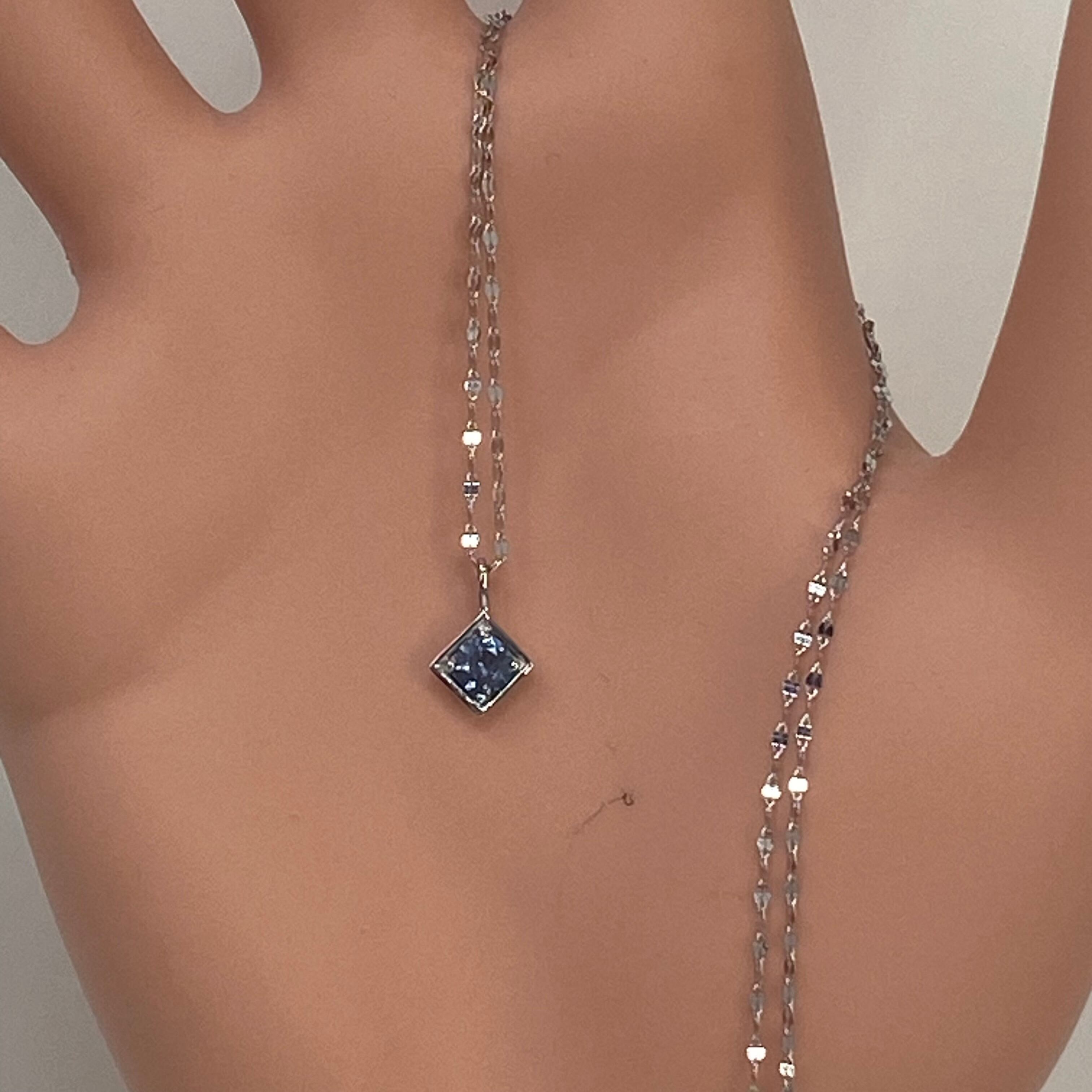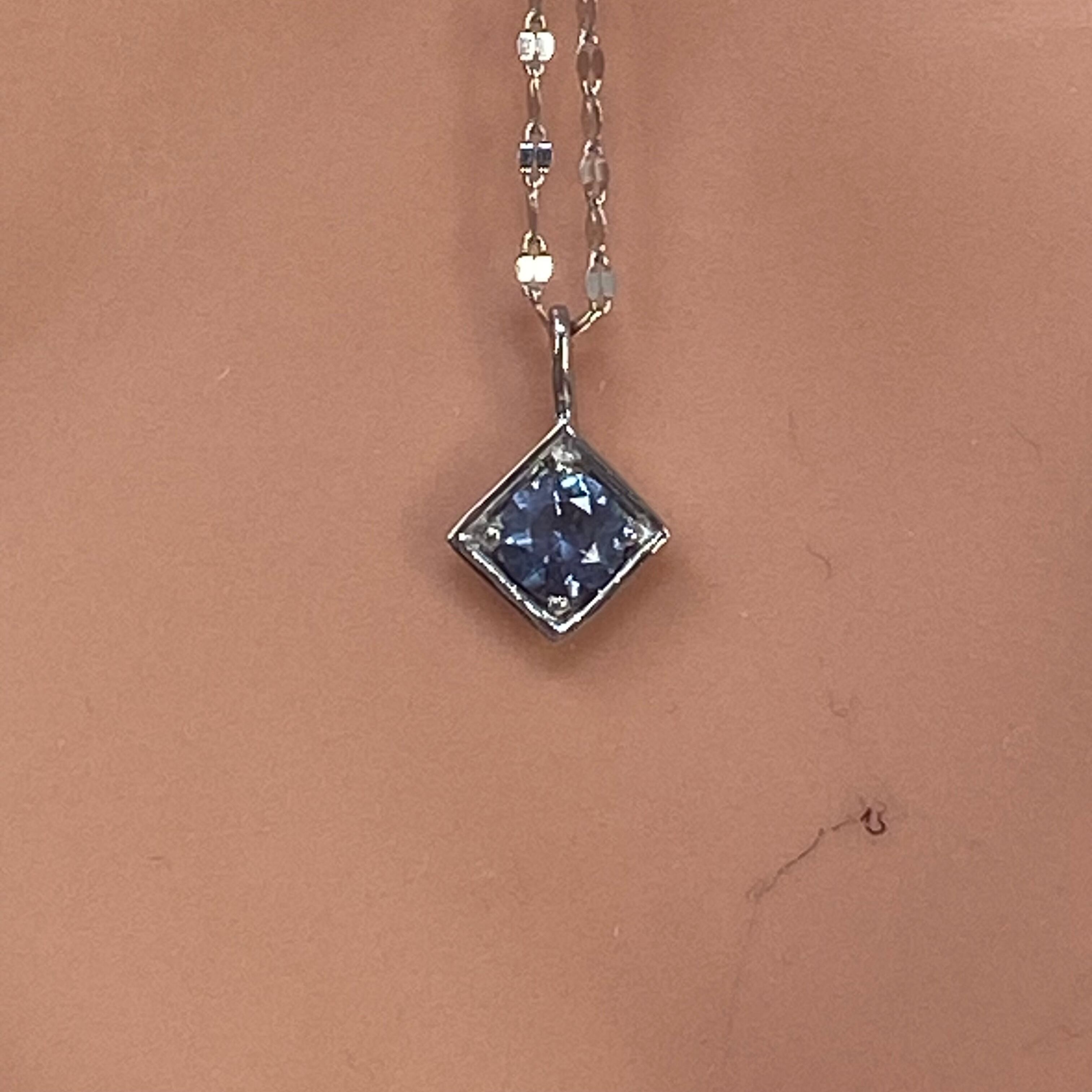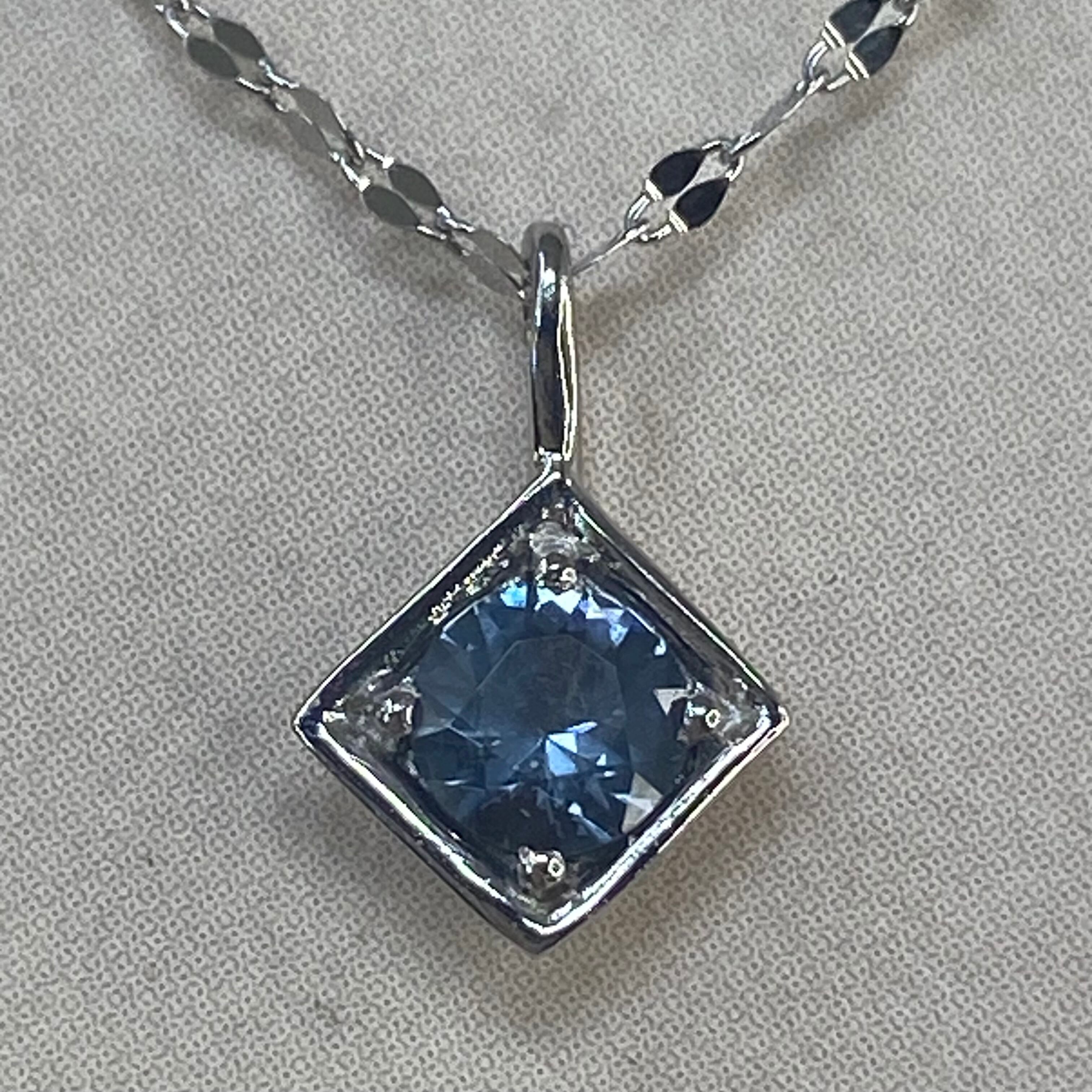 落ち着いたブルーの輝きが美しい天然スピネルを使用した、プラチナ製のペンダントネックレスです。