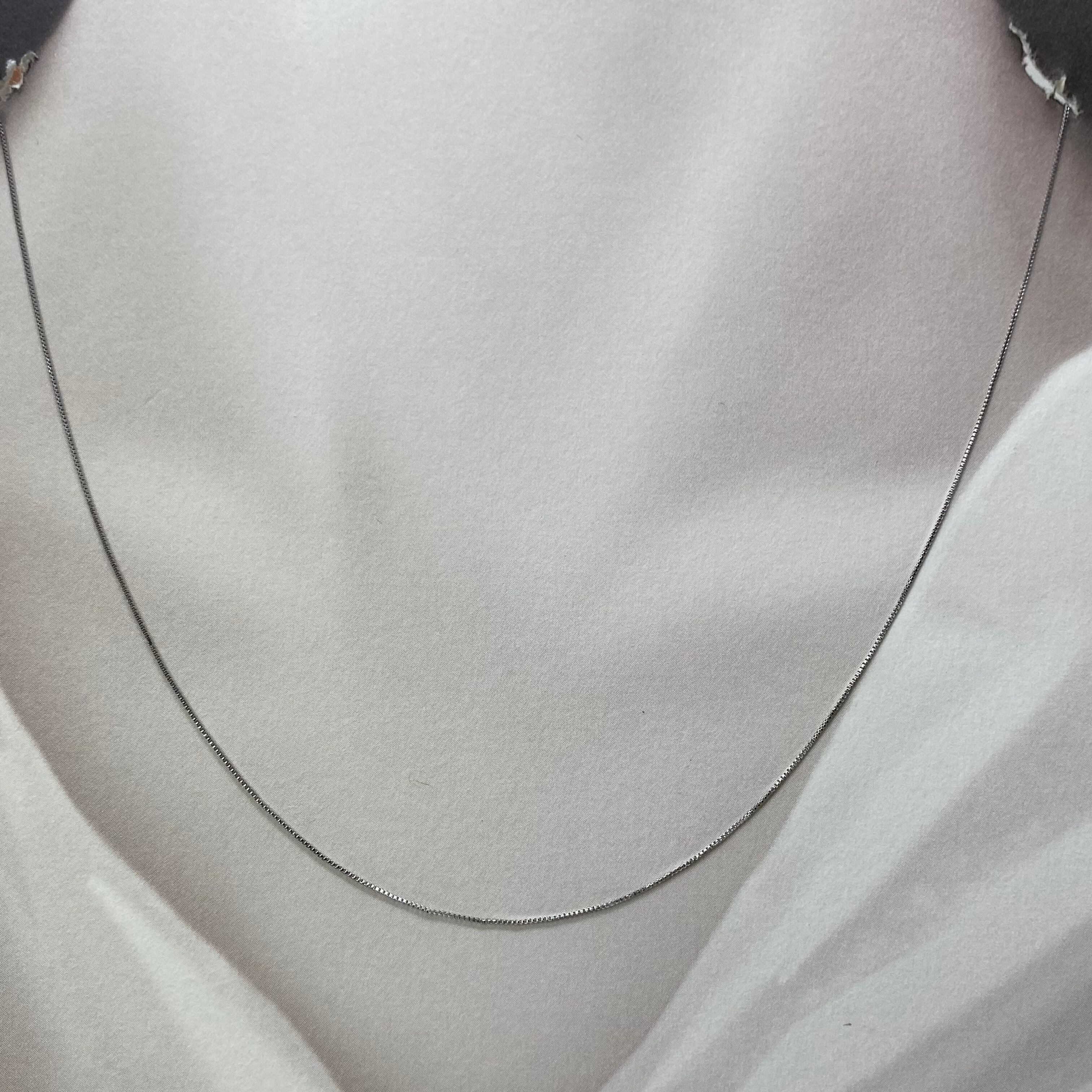 キューブ型のパーツを組み合わせたベネチアンチェーンは、光を反射する面が多く、凛とした輝きを放ちます。