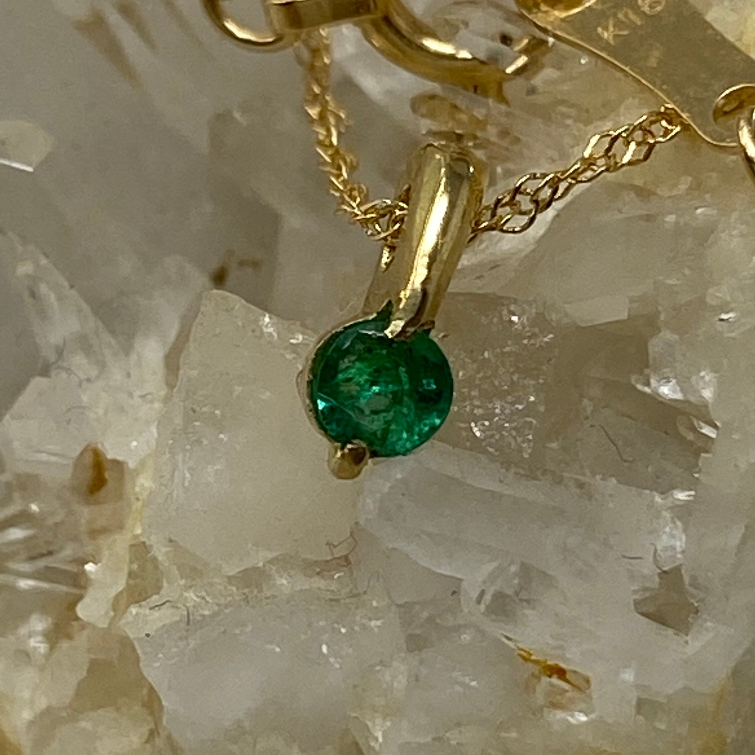 深く鮮やかな輝きを放つ、天然エメラルドのK18イエローゴールドプチネックレス。