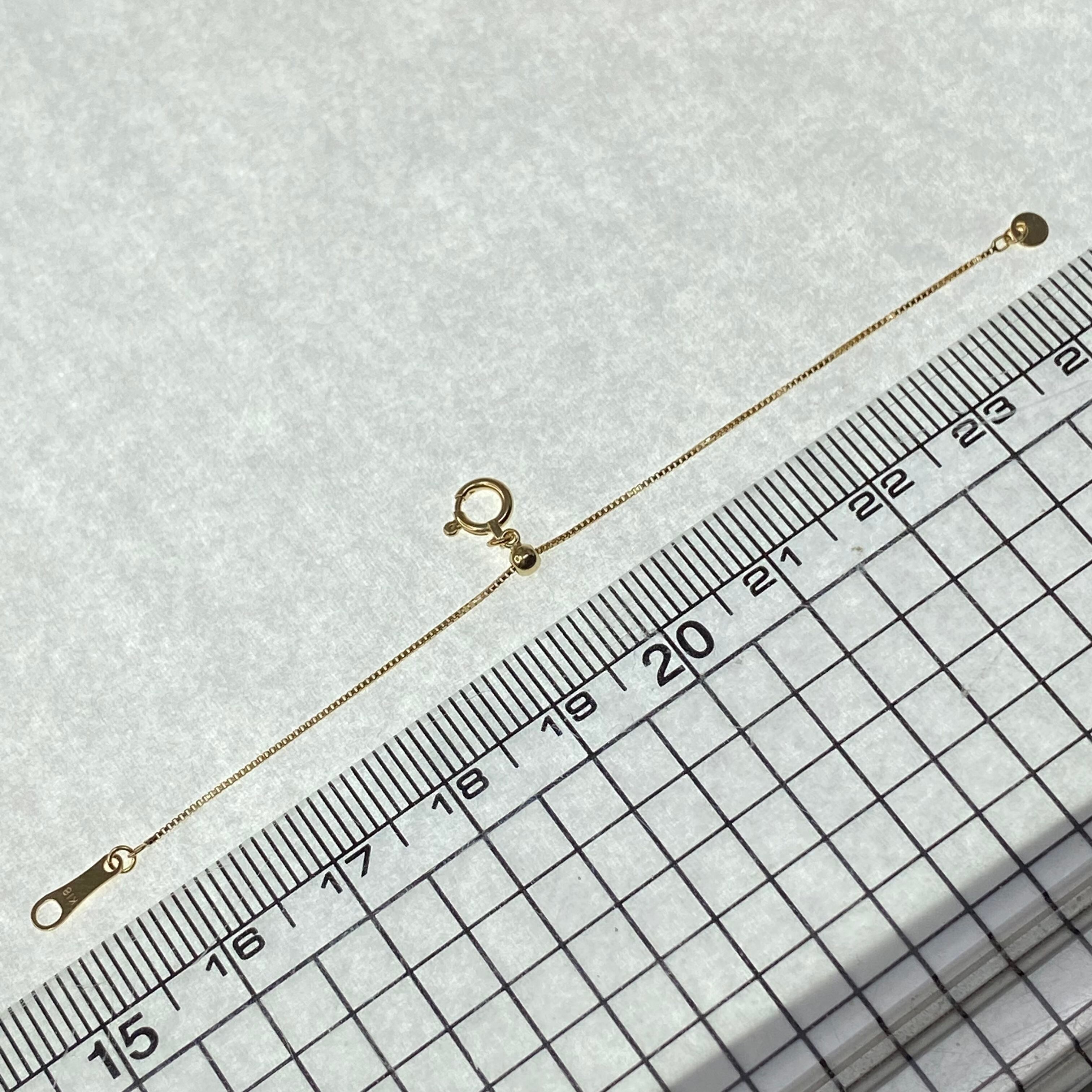 18金 k18YG ベネチアチェーン 0.5ミリ スライド式 10センチのロングアジャスター