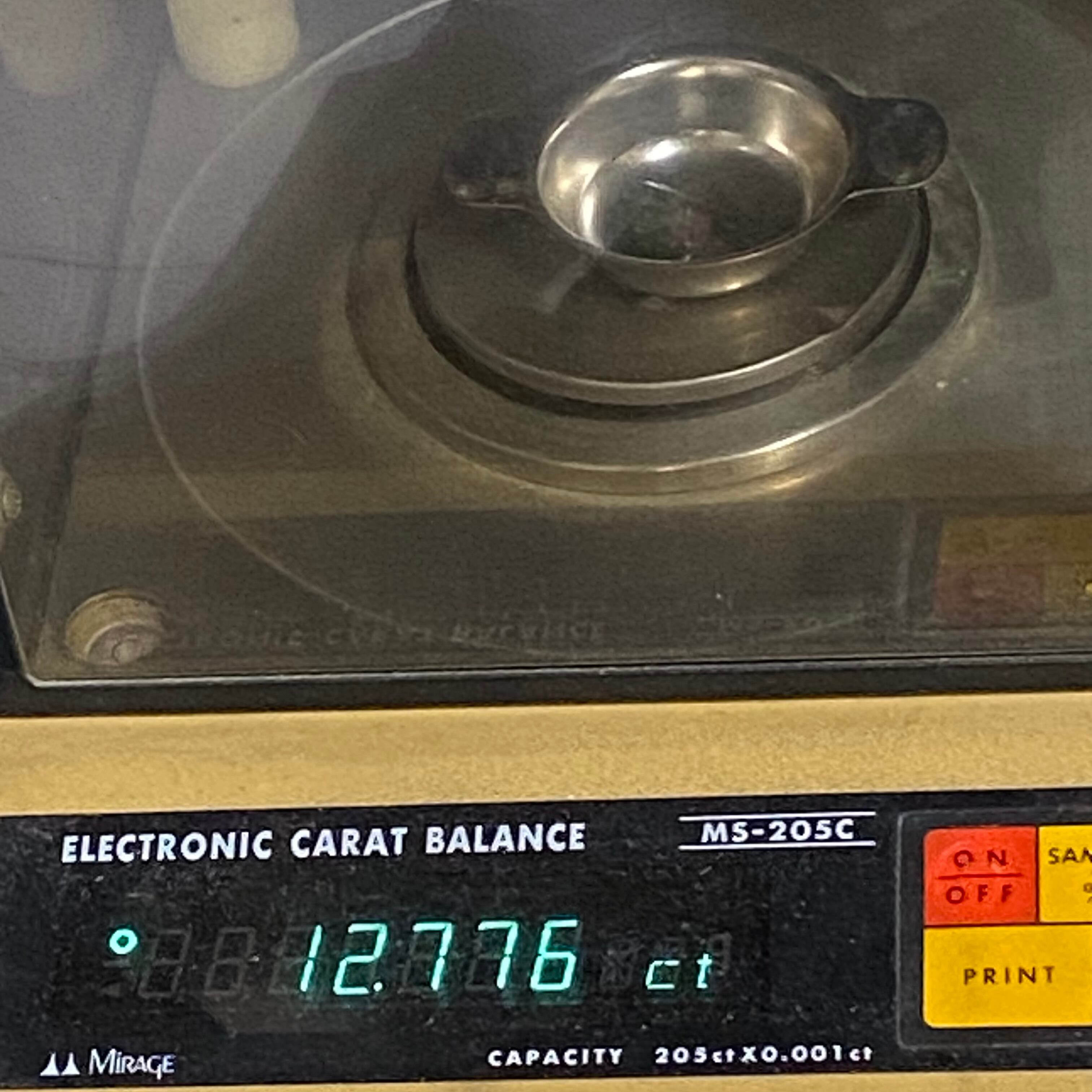 12.78ctと存在感のあるサイズで、ピンクとグリーンの鮮やかな色合いが楽しめる一品です。