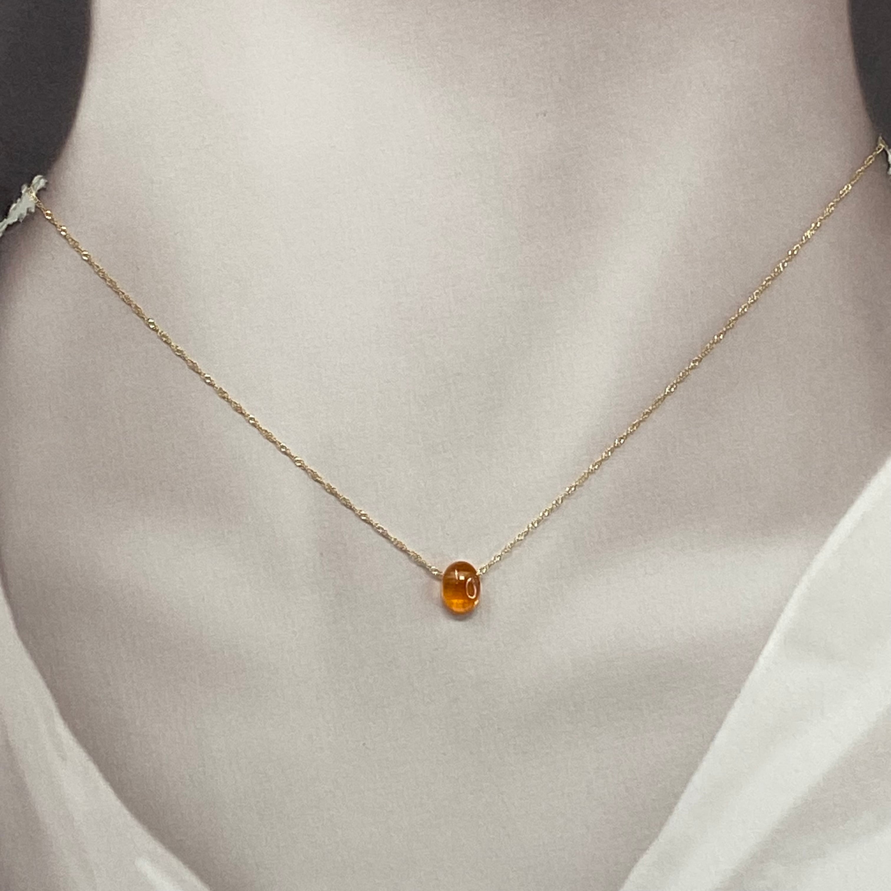 繊細なスクリューチェーンが、マンダリンガーネットの輝きを際立たせます。