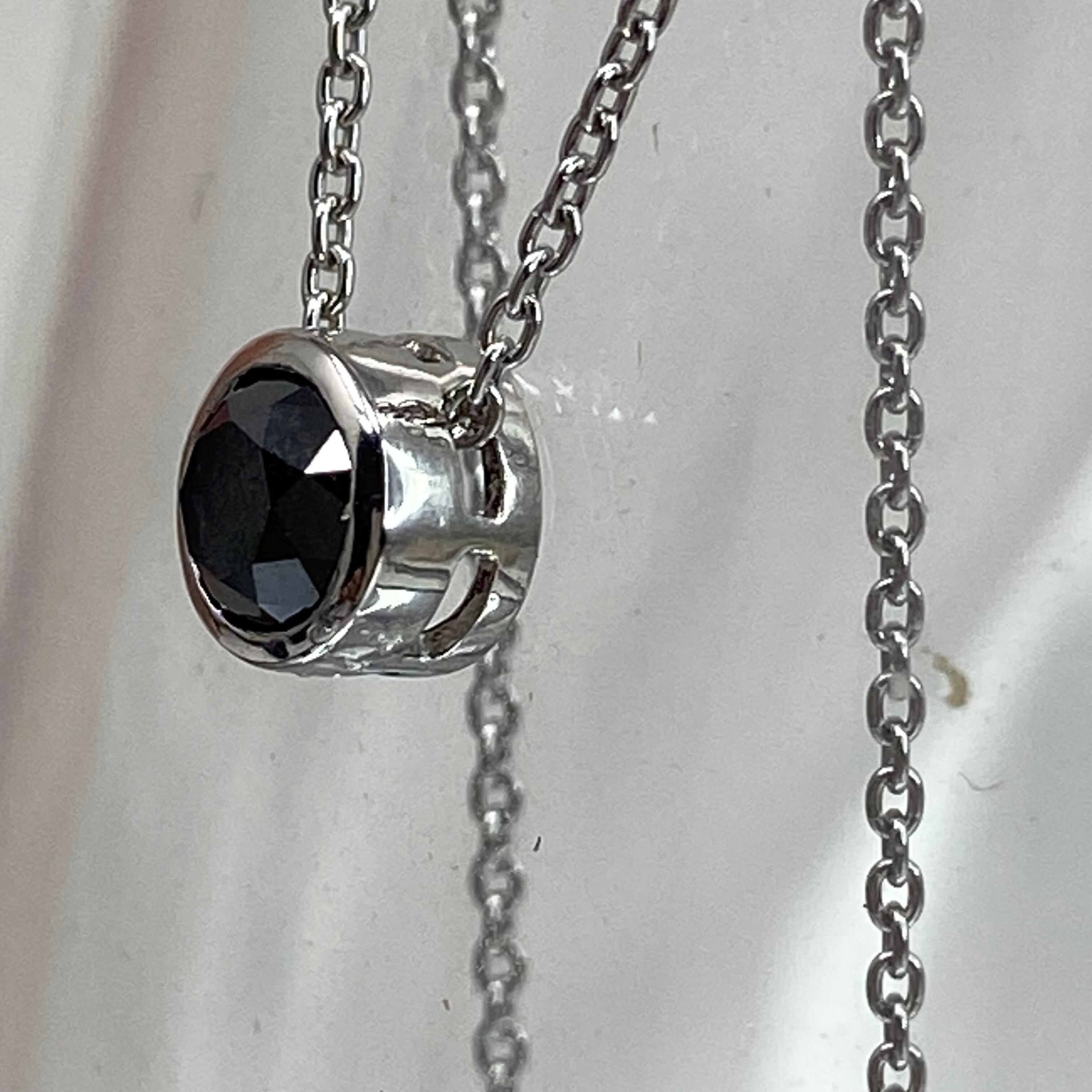 クールで洗練された、プラチナのブラックダイヤモンドネックレスです。透明感のある高品質な天然ブラックダイヤモンド(0.4ct)を、シンプルなフクリン留めのペンダントに仕上げました。45cmのスライド式チェーンなので、お好みの長さに調整でき、様々なスタイルでお楽しみいただけます。