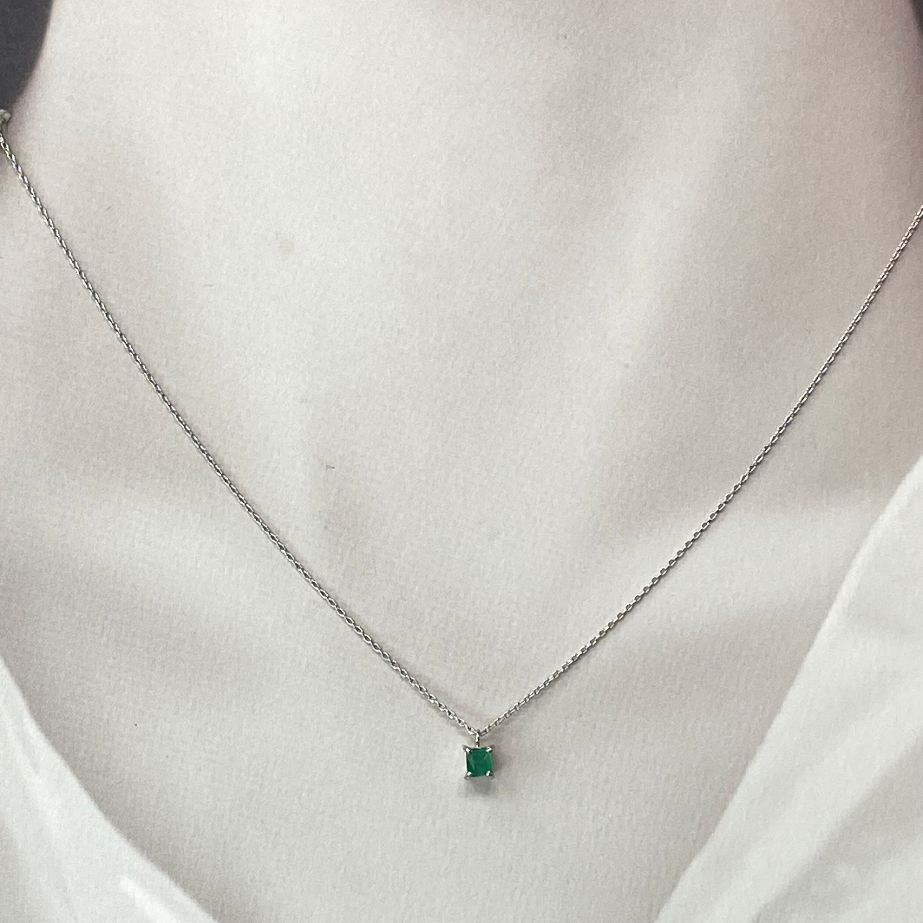 5月の誕生石である**天然エメラルド**を使用した、シンプルな**プチネックレス**です。