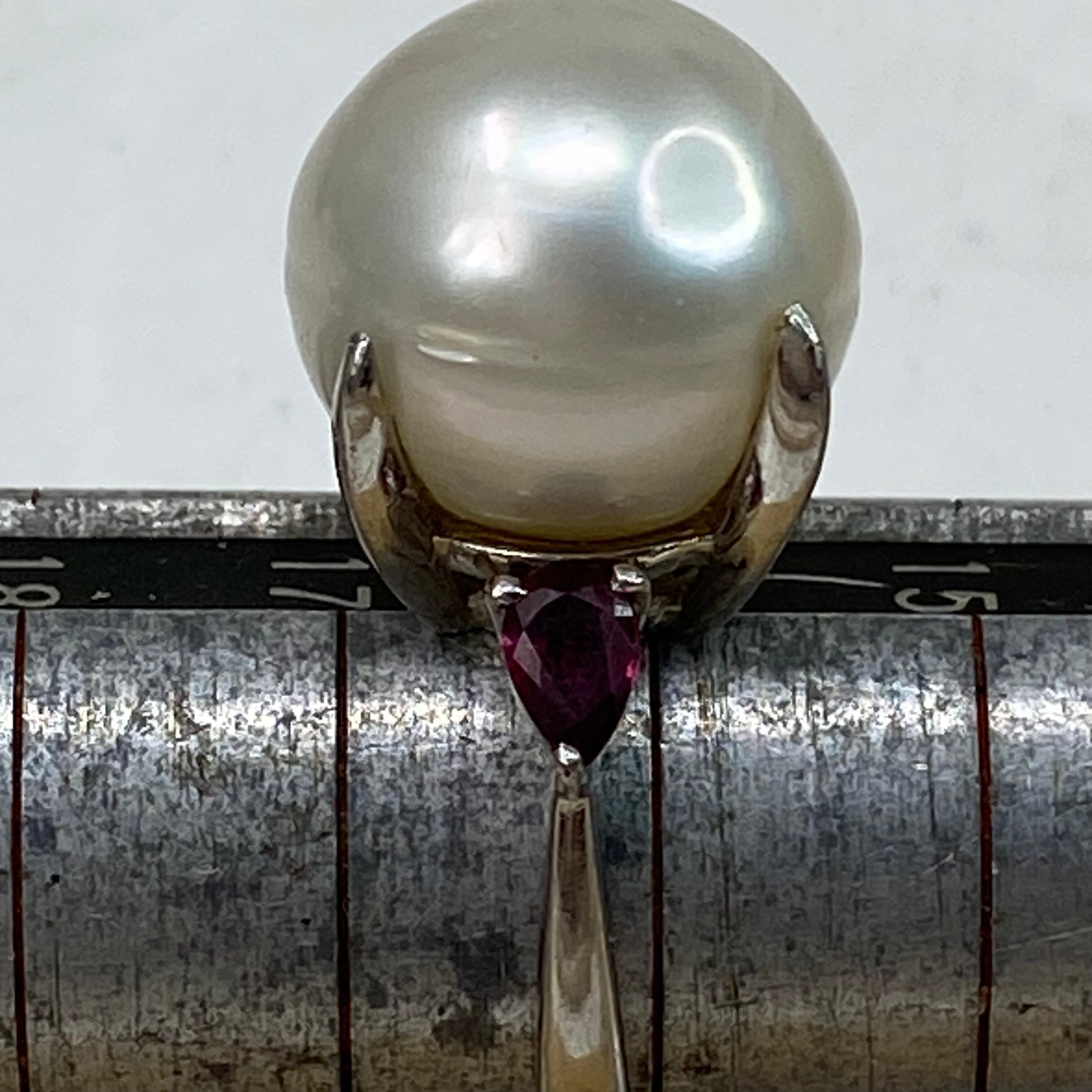 * 素材は**pt900 プラチナ**、真珠は**南洋真珠 14.4mm**、宝石は**天然ルビー 0.55ct**です。