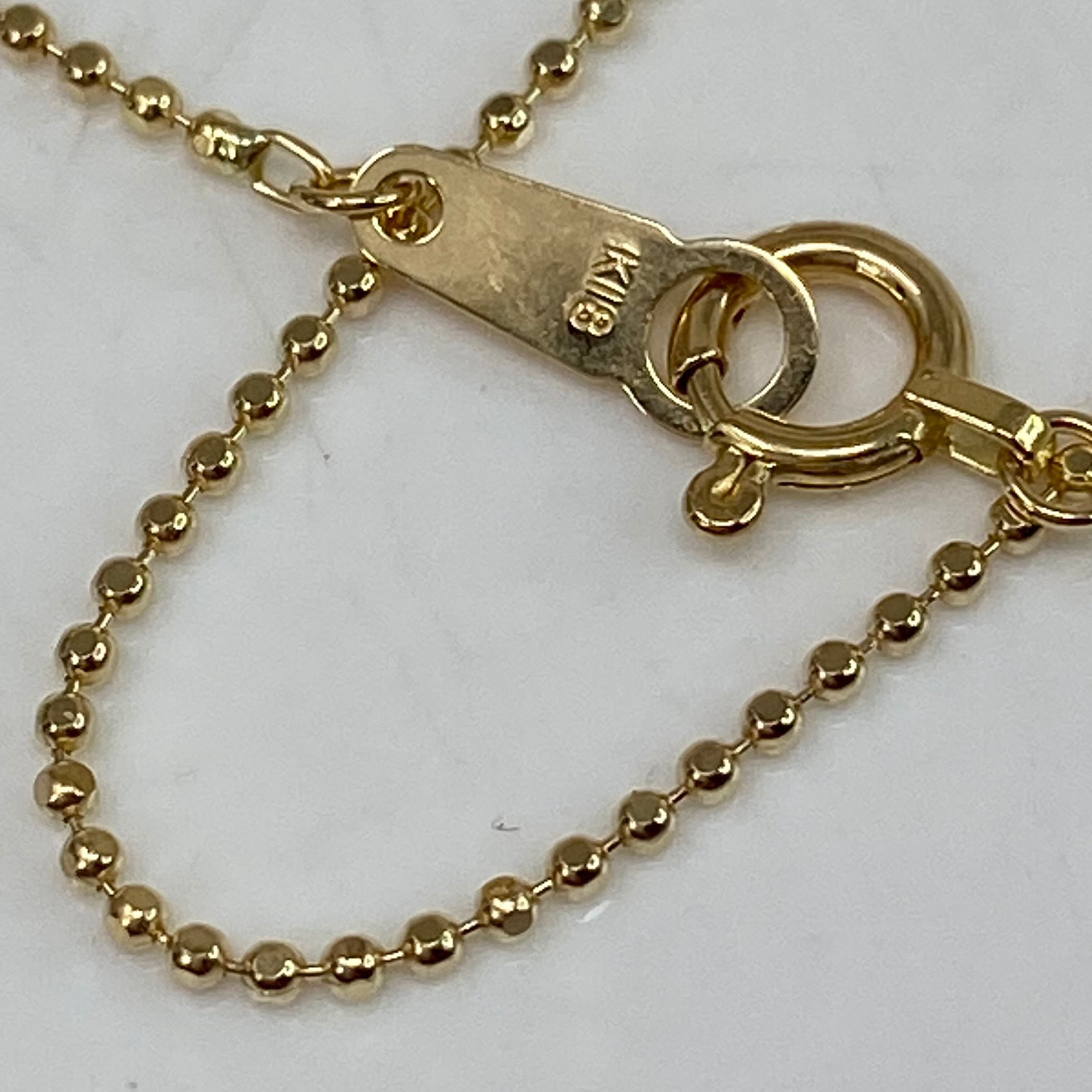 上質な**K18イエローゴールド(k18YG AU750 18金)**を使用した、繊細な輝きを放つカットボールチェーンネックレスです。