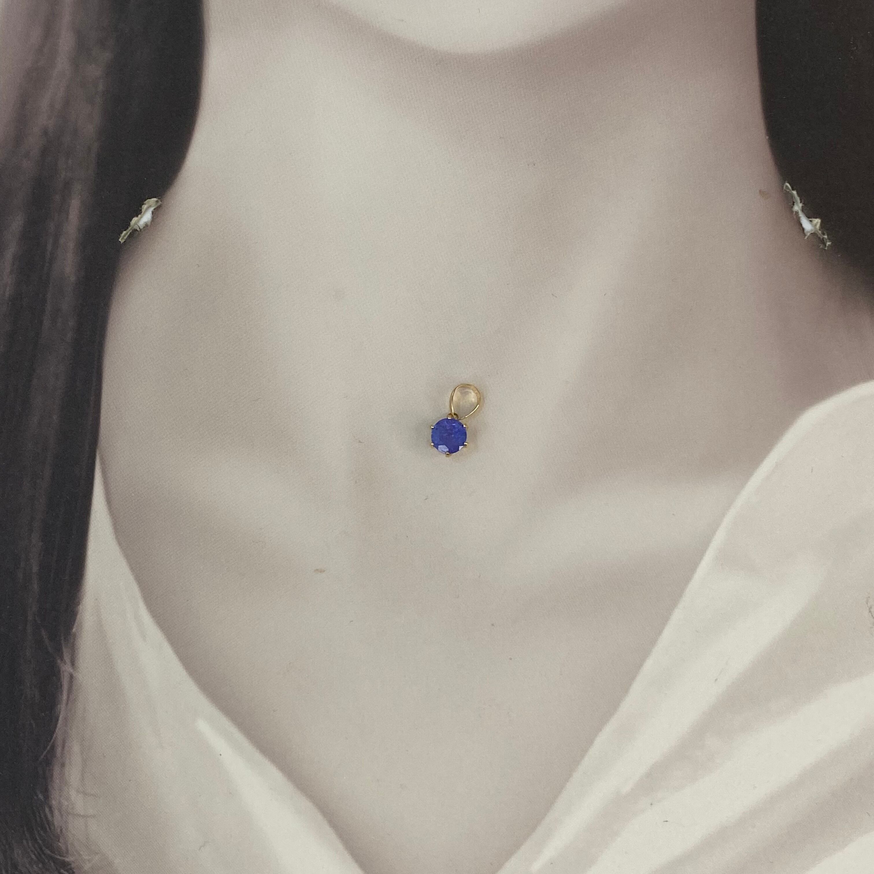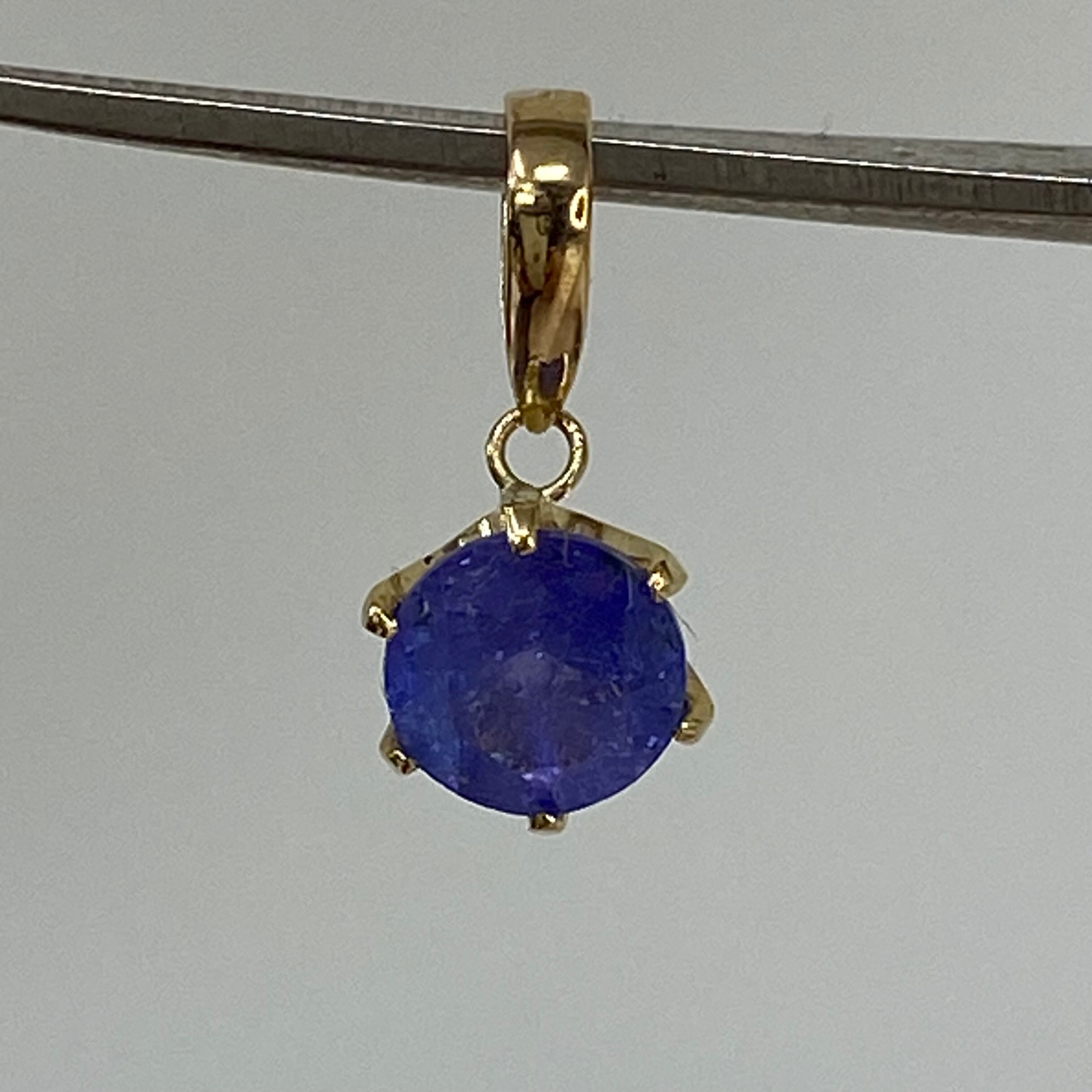 深い青紫色が美しい**天然タンザナイト(0.87ct)**を使用した、**18金イエローゴールド(k18YG AU750)**のペンダントトップです。