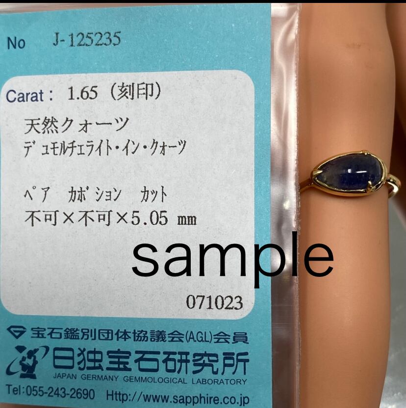 同じ時期に仕入れたルースをリングに加工した際には、**デュモルチュライトインクォーツ**として販売された実績があります。