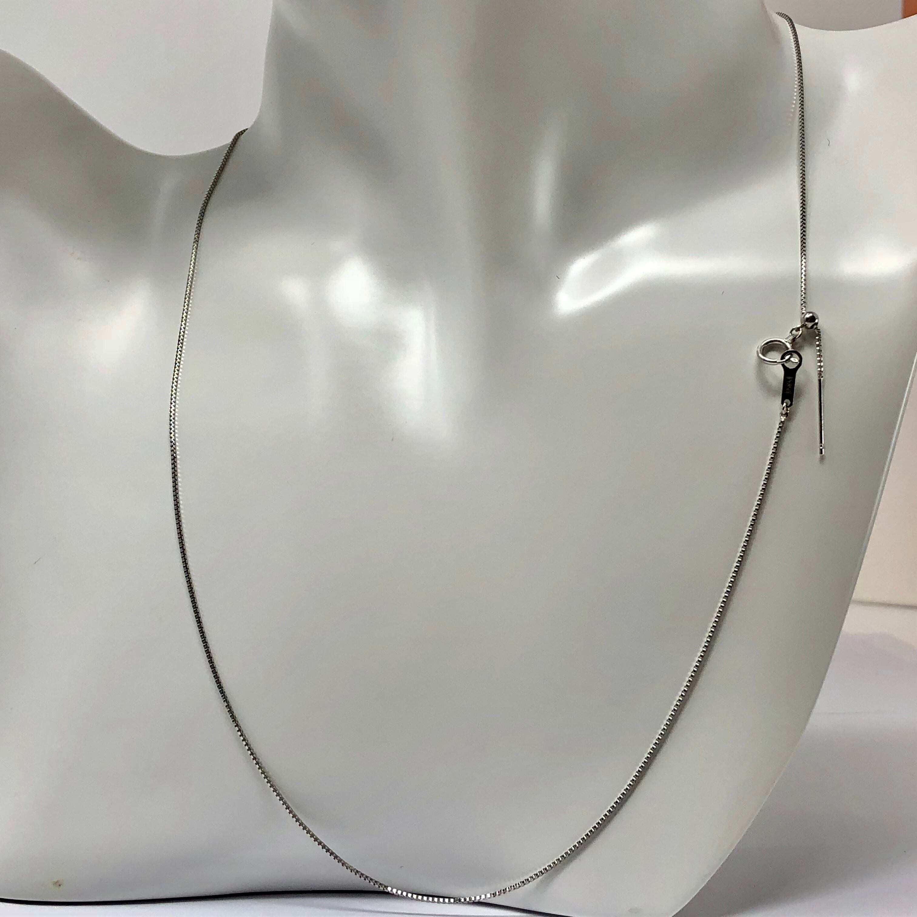 長さは**最長60センチ**まで自由に調節可能なフリーサイズ仕様。ロングネックレスとしてお使いいただけます。
