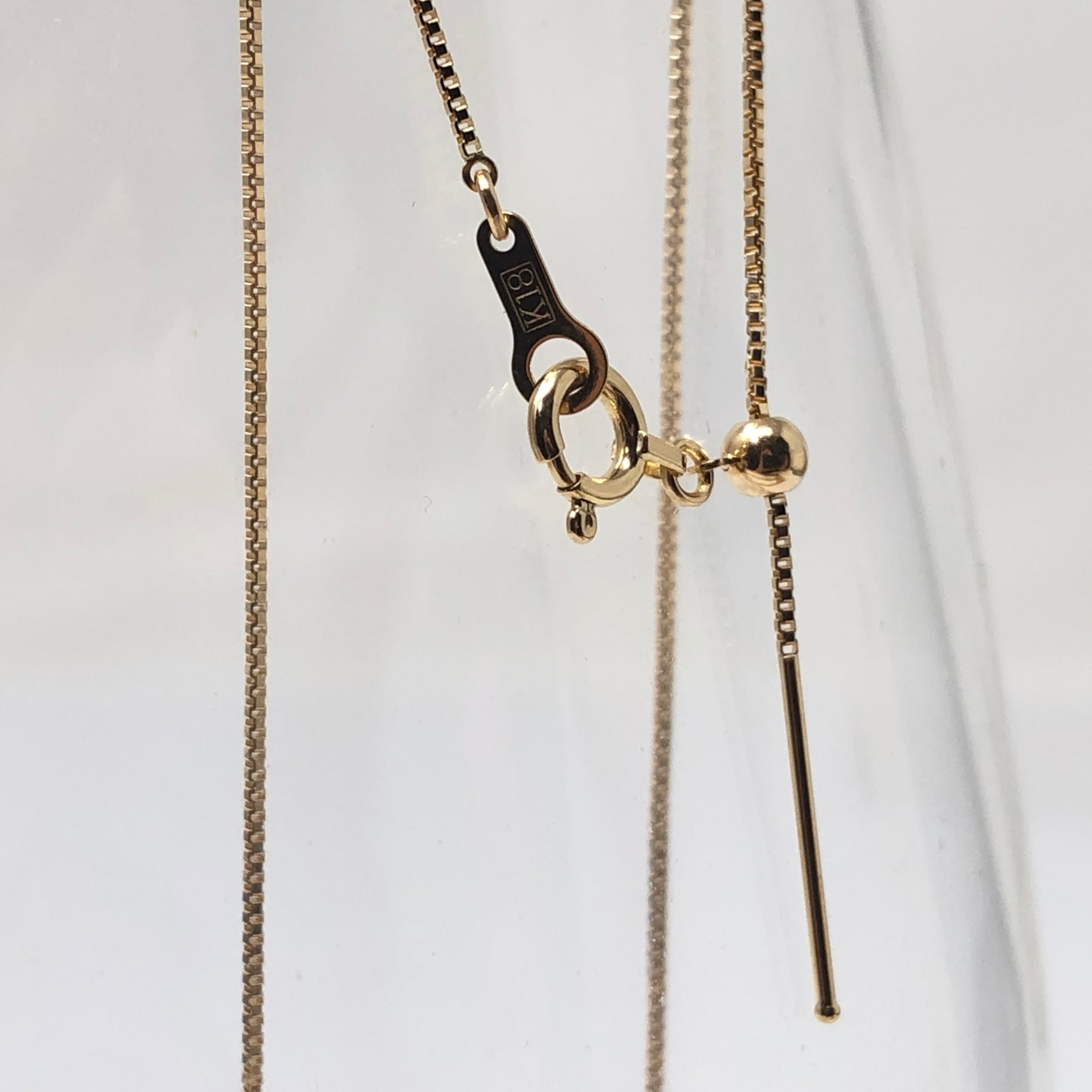**K18YG 0.8mm幅 ベネチア ピン式スライド ロングネックレス 60cm**